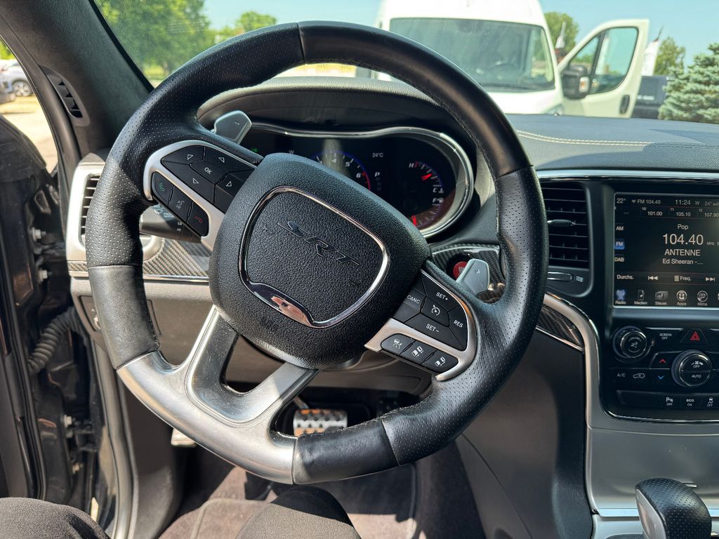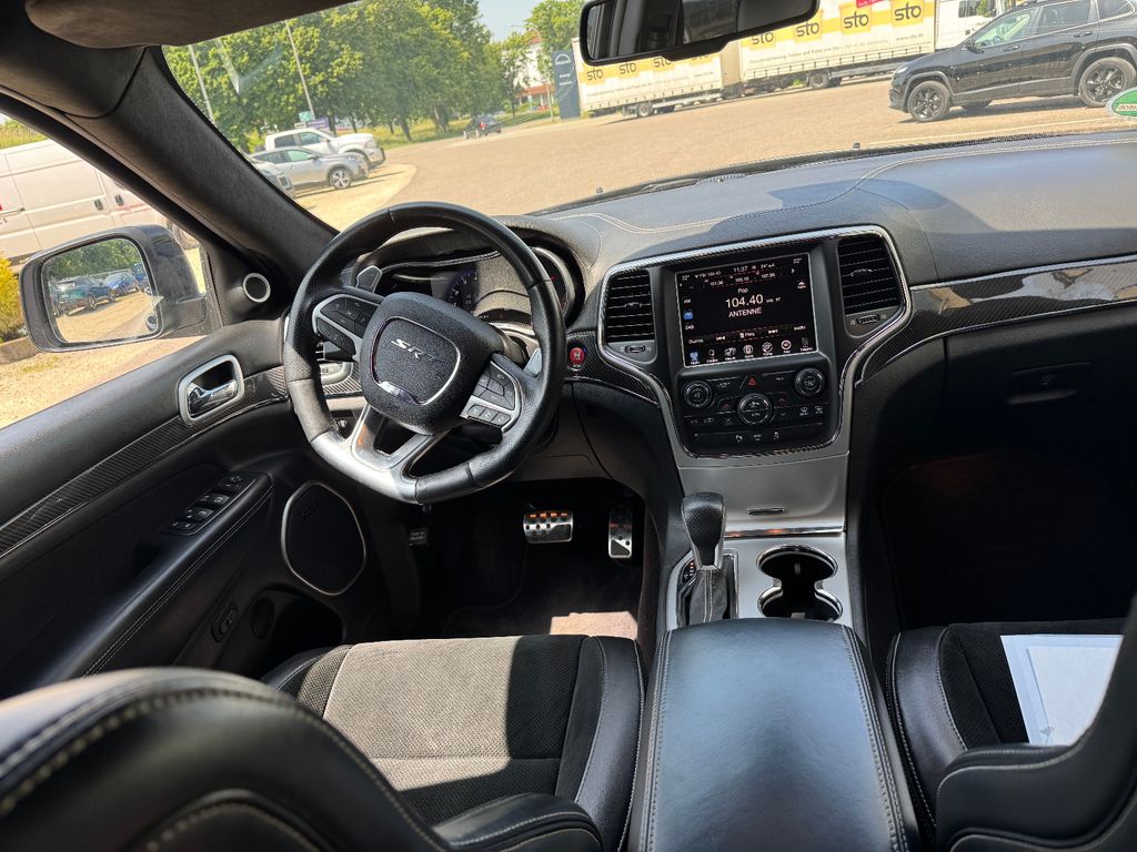 Airbag Fahrer-/Beifahrerseite, Aktive Kopfstützen, Anhänger-Stabilisierungs-Programm, Antriebs-Schlupfregelung (ASR), Audio-Navigationssystem: UConnect Smartouch Multimedia-System mit Navigationssystem, Audiobedienung am Lenkrad, Automatische Fahrlichtschaltung / Lichtsensor, Außenspiegel elektr. anklappbar, Außenspiegel elektr. verstell- und heizbar, beide, Außenspiegel mit Abblendautomatik, Außenspiegel Wagenfarbe, Bordcomputer, Bremsassistent, CD-Laufwerk in der Mittelarmlehne, Dachreling verchromt, Einstiegsleisten (verchromt), Elektron. Traktionskontrolle, Fahrassistenz-System: Überschlag-Schutzsystem (ERM), Fensterheber elektrisch vorn + hinten, Freisprechanlage UConnect (mit Bluetooth-Schnittstelle), Gepäckraumabdeckung / Rollo, Hochleistungs-Bremssystem (Brembo), Innenausstattung: Carbon-Optik, Innenspiegel mit Abblendautomatik, Isofix-Aufnahmen für Kindersitz, Karosserie: 5-türig, Klimaautomatik 2-Zonen, Knieairbag Fahrerseite, Kopf-Airbag-System (Windowbag) vorn + hinten, Lendenwirbelstütze Sitz vorn links, Lendenwirbelstütze Sitz vorn rechts, Lenkrad (Sport/Leder), Lenkrad heizbar, Lenksäule (Lenkrad) elektr. höhen-/längsverstellbar, LM-Felgen, Memoryfunktion - Außenspiegel, Sitz, Modellpflege, Motor 6,4 Ltr. - 344 kW V8, Nebelschlussleuchte, Panoramadach vorn elektrisch, hinten fest, Parkpilotsystem vorn und hinten, Pedale Aluminium, Radstand 2915 mm, Reserverad in Fahrbereifung, Rückfahrkamera, Rücksitz geteilt / klappbar, Schadstoffarm nach Abgasnorm Euro 6, Schalt-/Wählhebelgriff Leder, Seitenairbag, Seitenschutzleisten Chromoptik, Sitz vorn links elektr. verstellbar, Sitz vorn rechts elektr. verstellbar, Sitzbelüftung vorn, Sitzbezug / Polsterung: Nappa / Velours-Leder, Sonnenblenden mit Spiegel (beleuchtet), Sound-System Harman-Kardon, Sport-Fahrwerk mit adaptivem Dämpfersystem (Selec-Trac), Sportsitze, SRT-Design-Paket, Stoßfänger Wagenfarbe, Türgriff außen verchromt, Unterfahrschutz, USB-Anschluss, Verglasung hinten abgedunkelt, Wärmeschutzverglasung (Dämmglas)