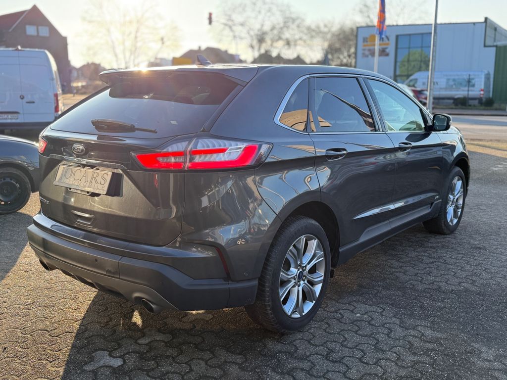 Dieser gepflegte Ford Edge SUV aus dem Jahr 2019 präsentiert sich in elegantem Grau-Metallic mit schwarzer Lederausstattung. Mit nur einem Vorbesitzer und lückenloser Servicehistorie bietet dieses Fahrzeug deutsche Qualität und Zuverlässigkeit. Der Allradantrieb in Kombination mit dem 238 PS starken Dieselmotor (Euro 6d-TEMP) sorgt für souveräne Fahrleistungen bei moderatem Verbrauch. Die Automatikgetriebe ermöglicht komfortables Fahren in jeder Situation.Die umfangreiche Ausstattung umfasst ein Panorama-Glasdach, elektrische Heckklappe, Navigationssystem, Apple CarPlay und Android Auto. Für Sicherheit sorgen zahlreiche Assistenzsysteme wie Spurhalteassistent, Kollisionsvermeidung und Müdigkeitserkennung. Die LED-Scheinwerfer mit Kurvenlichtfunktion und Regensensor erhöhen die Sicherheit bei Nachtfahrten und schlechtem Wetter.