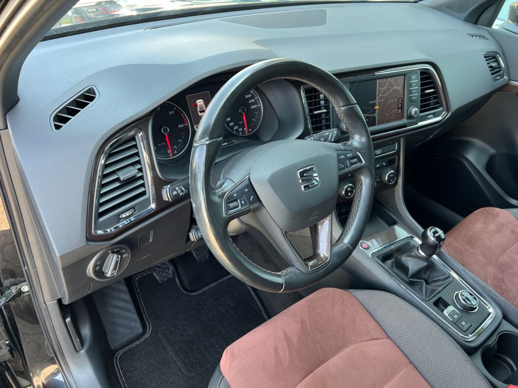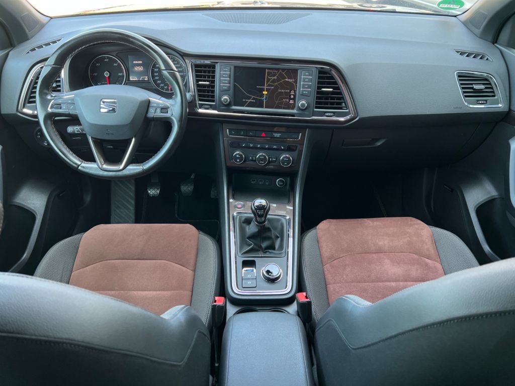 Antriebsart: Allradantrieb, Bremsassistent, Chrom-Paket, Dachhimmel schwarz, Doppeltonhorn, Fahrassistenz-System: Berganfahr-Assistent (Hill-Holder), Fahrassistenz-System: Fahrprofilauswahl (SEAT Drive Profile), Fahrassistenz-System: Müdigkeitserkennung, Fahrassistenz-System: Umfeldbeobachtungssystem (Front assist) mit City-Notbremsfunktion, Fensterheber elektrisch vorn + hinten, Fußraumbeleuchtung vorn, Gepäckraumabdeckung / Rollo, Handschuhfach beleuchtet, Heckleuchten LED, Innenausstattung: Chrom-Applikationen, Innenraumlicht-Paket LED, Isofix-Aufnahmen für Kindersitz, Karosserie: 5-türig, Klimaanlage Climatronic 2-Zonen, Knieairbag Fahrerseite, Komfortsitze, Kopf-Airbag-System, Kopfstützen hinten (3-fach), Kopfstützen vorn, Lendenwirbelstütze Sitz vorn links, verstellbar, Lendenwirbelstütze Sitz vorn rechts, verstellbar, Lendenwirbelstütze verstellbar, Lenkrad (Sport/Leder) mit Multifunktion, Licht- und Sicht-Paket, LM-Felgen, Mittelarmlehne hinten, Mittelkonsole vorn mit Mittelarmlehne, Becherhalter, Ablagebox und Luftausströmer hinten, Motor 2,0 Ltr. - 110 kW TDI, Parkbremse elektrisch, Radstand 2630 mm, Reifenkontroll-Anzeige, Rückfahrkamera, Rücksitzlehne klappbar, Rücksitzlehnen umklappbar mit Fernentriegelung im Kofferraum, Schadstoffarm nach Abgasnorm Euro 6, Schalt-/Wählhebelgriff Leder, Scheinwerfer LED, Schließ-/Startsystem Kessy, Seitenairbag, Seitenscheiben hinten und Heckscheibe abgedunkelt, Sitz vorn links höhenverstellbar, Sitz vorn rechts höhenverstellbar, Sitzbezug / Polsterung: Leder / Alcantara, Start/Stop-Anlage, Stau-/Ablagefach unter Sitz vorn links, Steckdose (12V-Anschluß) vorn, Verglasung getönt, Verzurrösen Koffer-/Laderaum, Wärmeschutzverglasung