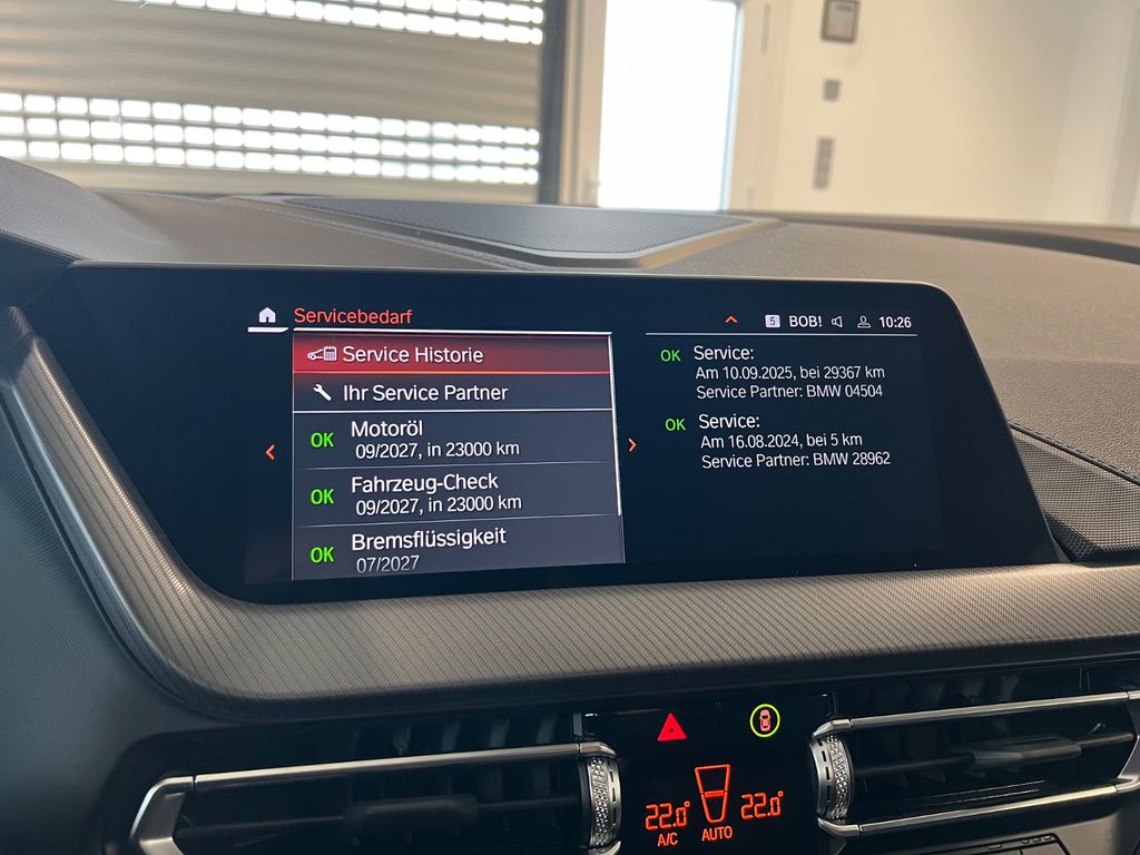 Ablage-Paket, Aerodynamik-Paket, Airbag Beifahrerseite abschaltbar, Airbag Fahrer-/Beifahrerseite, Aktive Motorhaube, Alpinweiß-Lackierung (Uni), Ausstattungs-Paket: Connected Professional, Außenausstattung: Shadow-Line Hochglanz, Außenspiegel elektr. verstell- und heizbar, BMW Live Cockpit Professional, Bordcomputer, Dachhimmel Anthrazit (BMW Individual), Diebstahlsicherung für Räder (Felgenschlösser), Dynamische Stabilitäts-Control (DSC) mit erweiterter Umfang, Fahrassistenz-System: Active Guard Plus (Spurhalteassistent, Frontkollisionswarnung), Fahrassistenz-System: Aufmerksamkeits-Assistent, Fahrassistenz-System: Performance Control, Fensterheber elektrisch vorn + hinten, Fußmatten Velours, Getriebe 7-Gang - Doppelkupplungsgetriebe mit Steptronic, Isofix-Aufnahmen für Kindersitz an Beifahrersitz, Isofix-Aufnahmen für Kindersitz an Rücksitz, Karosserie: 4-türig, Kopf-Airbag-System hinten, Kopf-Airbag-System vorn, Lenkrad (Sport/Leder M-Technic) mit Multifunktion, Licht-Paket, LM-Felgen, M Sport, Motor 1,5 Ltr. - 100 kW 12V KAT, Navigations-Paket ConnectedDrive, Otto-Partikelfilter (OPF), Parkbremse elektrisch, Personalisierungssystem (Personal Profile), Reifendruck-Kontrollsystem, Schadstoffarm nach Abgasnorm Euro 6e, Scheibenwaschdüsen heizbar, Seitenairbag vorn, Service-System: ConnectedDrive Services, Service-System: Gesetzlicher Notruf, Service-System: Intelligenter Notruf inkl. TeleServices, Sitzbezug / Polsterung: Stoff / Sensatec-Kombination Trigon, Sport-Fahrwerk (M-Technic), Sportlenkung (M-Technic), Sportsitze vorn, Start-Stop-Knopf, Start/Stop-Anlage (Funktion), Warndreieck