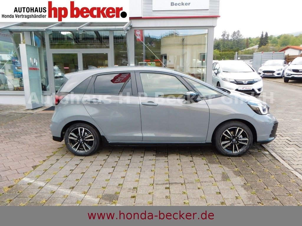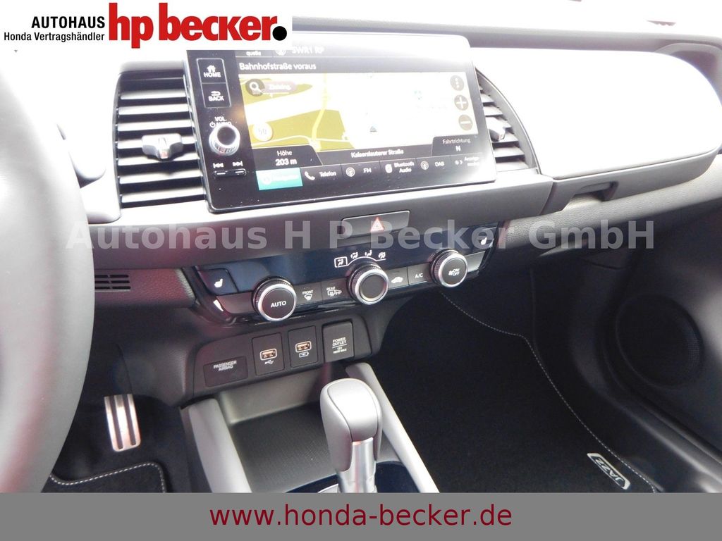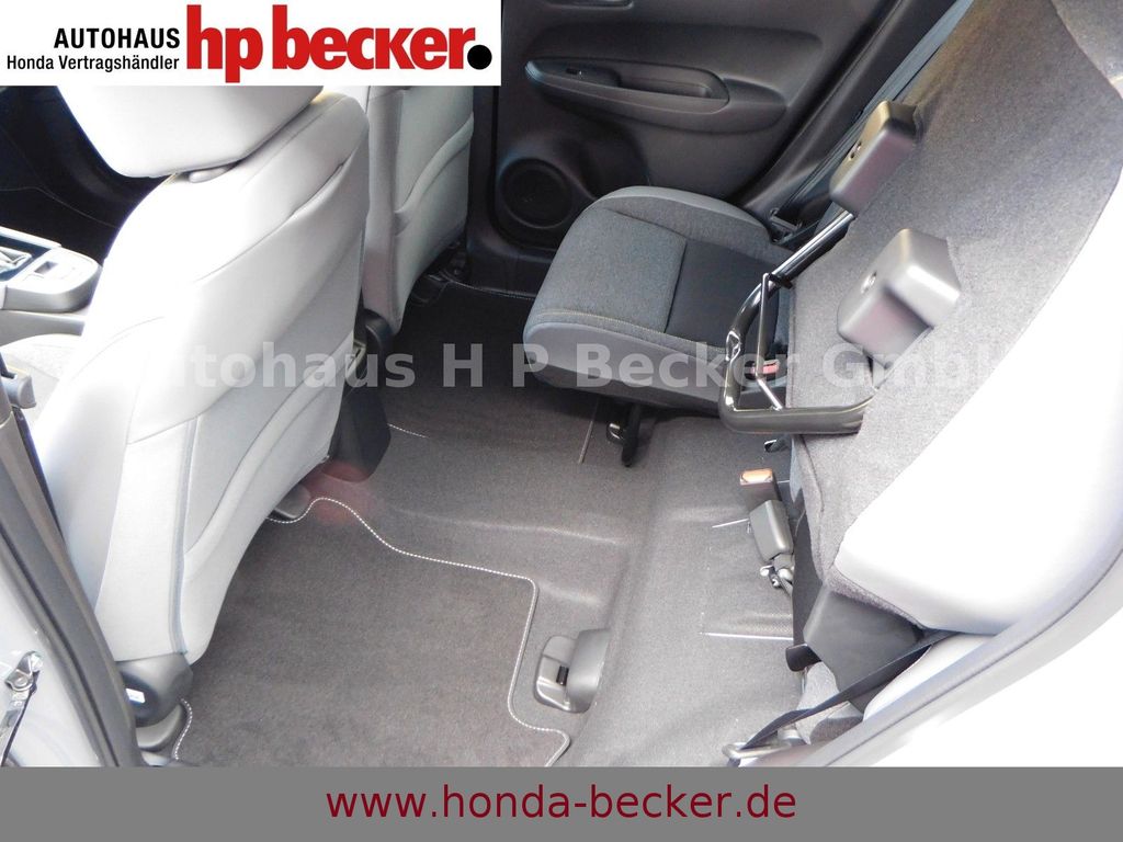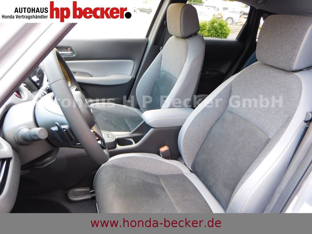 8 Lautsprecher,Lenkrad heizbar, Airbag Beifahrerseite abschaltbar, Airbag Fahrer-/Beifahrerseite, Aktive Kopfstützen vorn, Anhänger-Stabilisierungs-Programm (TSA), Anzeige für Reifendruck im Display, Autom. Begleitfunktion der Beleuchtung (Coming Home, Leaving Home), Automatische Fahrlichtschaltung / Lichtsensor, Außenspiegel elektr. anklappbar, Außenspiegel elektr. verstell- und heizbar, beide, Außenspiegel mit Bordsteinautomatik, rechts, Außenspiegel schwarz lackiert, Blinkleuchte in Außenspiegel integriert, Bremsassistent, Dachantenne im Haifischflossen-Design, Dachreling, Einparkhilfe vorn und hinten, Elektr. Bremskraftverteilung, Elektromotor 80 kW (Hybridantrieb), Fahrassistenz-System: Berganfahrhilfe, Fahrassistenz-System: Eco Assist (Econ Modus), Fahrassistenz-System: Fernlichtassistent (HSS), Toter-Winkel-Sensor, Fahrassistenz-System: Intelligente Geschwindigkeitsanpassung (Tempomat) mit Abstandsregelung I-ACC, Fahrassistenz-System: Kollisionswarnsystem mit Bremseingriff und Fußgängererkennung (CMBS), Fahrassistenz-System: Sicherheitssystem mit automatischem Notruf (ERA GLONASS / eCall), Fahrassistenz-System: Spurhalteassistent (LKAS / LDW), Fahrassistenz-System: Spurverlassenswarnung (LDW, Lane Departure Warning), Fahrassistenz-System: Stauassistent (LSF), Fahrassistenz-System: Verkehrszeichenerkennung, Fensterheber elektrisch vorn und hinten, mit Auf-/Ab-Automatik, Freisprecheinrichtung (Bluetooth) mit Sprachsteuerung, Gepäcknetz an Vordersitzlehne links, Gepäcknetz an Vordersitzlehne rechts, Gepäckraumabdeckung / Rollo, Getriebe Automatik stufenlos - ECVT, Getränkehalter vorn, Gurtstraffer, Heckleuchten LED, Hybrid 90 kW (Motor 1,5 Ltr. - 79 kW), Infotainment-System: Honda Connect mit 9" Touchscreen / Garmin Navi / Internetbasierende Dienste / DAB-Tuner, Isofix-Aufnahmen für Kindersitz, Karosserie: 5-türig, Klimaautomatik, Knieairbag Fahrerseite, Kopf-Airbag-System, Lenksäule (Lenkrad) höhenverstellbar, Leseleuchten vorn, LM-Felgen, Motorsound-System (Acoustic Vehicle Alerting System, AVAS), Multi-Info-Display (i-MID), Multifunktion für Lenkrad, Nebelscheinwerfer LED, Otto-Partikelfilter (OPF), Parkbremse elektrisch, Reifen-Reparaturset, Rückfahrkamera, Rücksitz geteilt / klappbar, Rücksitze im Fahrzeugboden versenkbar, Schadstoffarm nach Abgasnorm Euro 6d, Schalt-/Wählhebelgriff Leder, Scheinwerfer LED, Seitenairbag hinten, Seitenairbag vorn, Seitenairbag vorn mitte (Center-Airbag), Sitz vorn links höhenverstellbar, Sitzbezug Velourskunstleder und gelben Akzenten, Dachspoiler, Stoßfänger in schwarz glänzend, Sportpedale, Lenkrad-Paddles, SPORT-MODUS, Sitzheizung vorn, Sonnenblenden mit Make-up-Spiegel, Steckdose (12V-Anschluß) in Armaturentafel, Türgriffe außen Wagenfarbe, USB-Ladeanschluß hinten (2-fach), USB-Ladeanschluß vorn, USB-Schnittstelle, Verglasung hinten abgedunkelt (Privacy Glass)