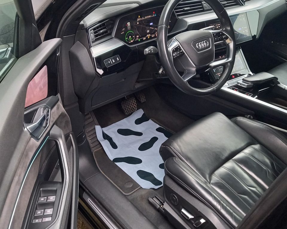 Airbag Beifahrerseite abschaltbar, Airbag Fahrer-/Beifahrerseite, Akustischer Fußgängerschutz, Außensound (e-sound), Audi connect (Internetbasierende Dienste), Audi connect (Notruf- und Assistance-System), Audi music interface, Außenspiegel Wagenfarbe, Blinkleuchten LED in Außenspiegel integriert, Diebstahlsicherung für Räder (Felgenschlösser), e-tron Aufladesystem, Einparkhilfe plus vorn, seitlich und hinten, akustisch und optisch mit Umgebungsanzeige, Elektromotor 300 kW (cont. 158 kW), Fahrassistenz-System: Bremsassistent (Audi pre sense front), Fahrassistenz-System: Insassen-Schutzsystem (Audi pre sense basic), Fahrassistenz-System: Spurverlassenswarnung, Fahrwerk (adaptive air suspension), Frontscheibe Akustikglas, Fußmatten Velours, Gepäckraum-Abtrennung (Netz), Gepäckraumabdeckung / Rollo, Gepäckraumklappe elektr. betätigt (öffnen + schliessen), Getriebe für Elektrofahrzeug, Glanz-Paket, HV-Batterie 95 kWh brutto / 89 kWh netto, Innenspiegel mit Abblendautomatik, Isofix-Aufnahmen für Kindersitz, Isofix-Aufnahmen für Kindersitz an Beifahrersitz, Karosserie: 4-türig, Kopf-Airbag-System (Sideguard), Ladedose (AC / DC), Ladekabel 2,5 m (e-tron), Ladekabel für öffentliche Ladesäulen (e-tron), Ladekabel mit Industriestecker (16 A / 400 V), Ladekabel mit Schukostecker, Ladekabel mit Typ 2-Stecker (Mode 3), Multi-Media-Interface MMI Basic Plus / MMI Radio Plus, Multi-Media-Interface MMI Navigation Plus mit MMI Touch, On-Board-Ladegerät (bis 11 kW), Progressivlenkung, Radstand 2928 mm, Reifen-Reparaturkit, Rücksitzlehne geteilt/klappbar (40:20:40), Seitenairbag vorn, Steckdose (12V-Anschluß) 3-fach, Universal-Schnittstelle Bluetooth, Wärmeschutzverglasung grün getönt