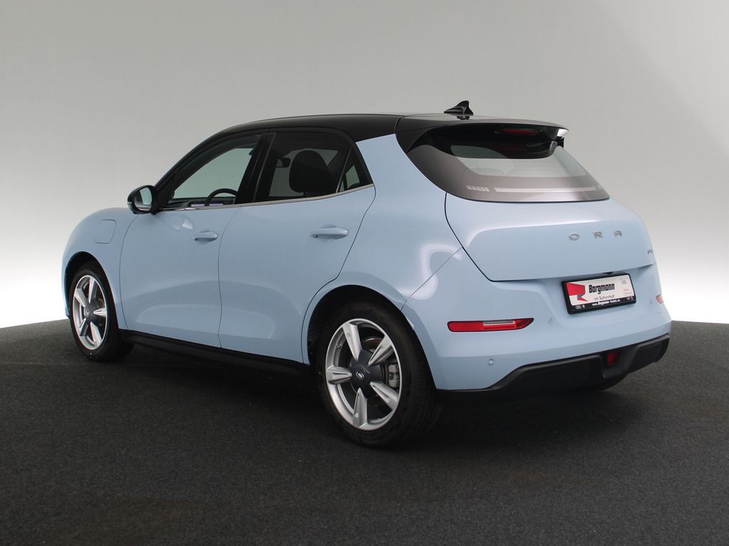 - Geschwindigkeits- und Spurregelung); Kurvenassistent Notlenkassistent; Querverkehrsassistent hinten mit Notbremsfunktion; Spurhalteassistent; Spurverlassenswarner; Spurwechselassistent; Stauassistent; Totwinkelwarner; Verkehrszeichenerkennung inkl. Geschwindigkeitswarner; 360° Rundumsichtkamera mit "transparent chassis"-Ansicht; Einparkhilfe hinten; Anfahrassistent; Antiblockiersystem; Auto-Hold-Funktion; Automatische Tuerentriegelung bei Kollision; Automatische Tuerverriegelung; Elektrische Parkbremse; Elektronische Bremskraftverteilung; Elektronische Stabilitaetskontrolle; Fahrer- und Beifahrerairbag mit deaktivierbarem Beifahrerairbag; Gurtwarner vorn und hinten; Isofix-Kindersitzhalterungen hinten; Manuelle Kindersicherung; Notrufsystem (eCall); Reifendruckkontrollsystem; reifen reparatur-Set; Seitenairbags vorn und Vorhangairbags; Sicherheitsgurte hinten mit Gurtstraffer und Gurtkraftbegrenzer; Sicherheitsgurte vorn mit Gurtstraffer und Gurtkraftbegrenzer; Traktionskontrolle; 12-V-Anschluss; 6 Lautsprecher; Apple CarPlay und Android AutoTM; Bluetooth®-Schnittstelle mit Freisprecheinrichtung; Digitaler Radioempfang (DAB+); Digitales 10, * 25" Fahrerinformationsdisplay; Gesichtserkennung; Induktive Smartphone-Ladefunktion; Navigationssystem; Smart-Key-System inkl. Smart-Start-Funktion; Sprachassistent "Hello Ora"; Telematikdienste; USB-Schnittstelle vorn und hinten; Einstellbare Rekuperationsstaerke (Niedrig, * Hoch); fahrmodus auswahl (Normal * Eco, * Sport); One-Pedal-Driving, Genaue KM auf Anfrage, PROBEFAHRT