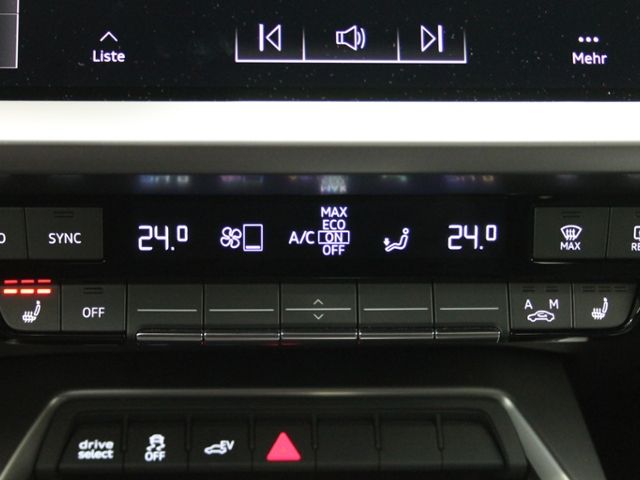 Elektron. Stabilitätskontrolle (ESC); ABS; ASR; 6-Gang-Automatikgetriebe; Kopf-Airbag-System (Sideguard); Seitenairbags vorn mit Kopfairbagsystem und Interaktionsairbag vorn; Seitenairbag vorn mitte (Interaktionsairbag); Airbags vorn, Beifahrerairbag deaktivierbar; Servolenkung elektronisch gesteuert; Außentemperatur-Anzeige; elektromechanische Parkbremse; Start-Stop-System; Start-Stop-Knopf; Innenspiegel automatisch abblendend, rahmenlos; Otto-Partikelfilter (OPF); Abgaskonzept, EU6 AP; Kindersicherung elektr. betätigt; Fußgänger-Schutzsystem; e-tron Aufladesystem; Akustischer Fußgängerschutz, Außensound (e-sound); Abbiege-Assistent links; Industriestecker CEE 16A, 400V, für das e-tron Ladesystem; Akustisches Fahrzeug-Warnsystem; Gurtanlegekontrolle mit Sitzbelegungserkennung hinten; Ladekabel Mode 3 für öffentliches Laden 11 kW (AC); Hybrid-Antriebssystem PHEV Haushaltsstecker Typ E/F für das e-tron Ladesystem; Wegfahrsperre elektronisch; Elektromotor 85 kW (Hybridantrieb); Hybrid 150 kW (Motor 1,4 Ltr. - 110 kW TFSI); Elektromotor 80 kW (Hybridantrieb); Frontantrieb