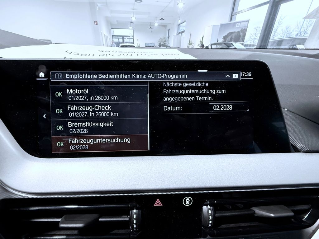 Ablage-Paket, Advantage, Airbag Beifahrerseite abschaltbar, Airbag Fahrer-/Beifahrerseite, Anhänger-Stabilisierungs-Programm (ASL), Ausstattungs-Paket: Connected, Ausstattungs-Paket: ConnectedDrive Services, Außenspiegel elektr. verstell- und heizbar, BMW Live Cockpit, BMW Live Cockpit Professional, Bordcomputer, DAB-Tuner (Radioempfang digital), Dynamische Stabilitäts-Control (DSC) mit erweiterter Umfang, Dynamische Tractions Control (DTC), Elektron. Sperrdifferential, Fahrassistenz-System: Active Guard Plus (Spurhalteassistent, Frontkollisionswarnung), Fahrassistenz-System: Aufmerksamkeits-Assistent, Fahrassistenz-System: Fahrerlebnisschalter, Fahrassistenz-System: Performance Control, Fensterheber elektrisch vorn + hinten, Freisprecheinrichtung Bluetooth mit USB-/Audio-Schnittstelle, Innenausstattung: Interieurleisten Quarz-Silber matt genarbt, Isofix-Aufnahmen für Kindersitz an Rücksitz, Karosserie: 5-türig, Kopf-Airbag-System hinten, Kopf-Airbag-System vorn, Lenksäule (Lenkrad) mechan. verstellbar, Leuchtweitenregelung, LM-Felgen, Motor 1,5 Ltr. - 100 kW 12V, Otto-Partikelfilter (OPF), Park-Distance-Control (PDC) vorn und hinten, Parkbremse elektrisch, Personalisierungssystem (Personal Profile), Reifendruck-Kontrollsystem, Rücksitzlehne geteilt/klappbar, Schadstoffarm nach Abgasnorm Euro 6d, Scheibenwaschdüsen heizbar, Scheinwerfer LED, Seitenairbag vorn, Service-System: ConnectedDrive Services, Service-System: Intelligenter Notruf inkl. TeleServices, Sitzbezug / Polsterung: Stoff Grid, Start-Stop-Knopf, Start/Stop-Anlage (Funktion), Uni-Lackierung, Wärmeschutzverglasung getönt.
