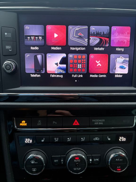 Standheizung und -lüftung mit Vorwahluhr und Fernbedienung; Multifunktions-Sportlenkrad in Leder, beheizbar, mit Schaltwippen; Gepäckraumboden in 2 Höhen einstellbar, für ebene Ladefläche, mit Fixierstange; Klimaanlage "Air Care Climatronic" mit Aktiv-Kombifilter, Bedienelementen hinten und 3-Zonen-Temperaturregelung; Bordcomputer; Sonnenschutzrollo an den Türscheiben hinten; Digital Cockpit Pro, mehrfarbig, verschiedene Info-Profile wählbar; Netztrennwand; Textilfußmatten vorn und hinten