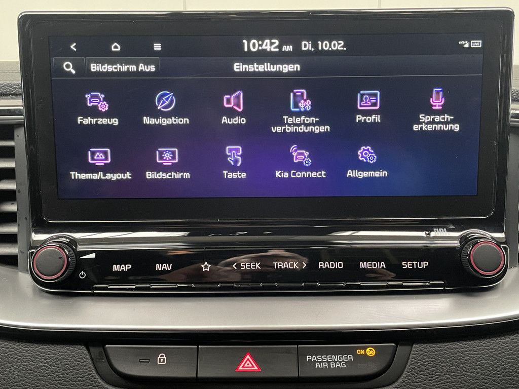 Kia-Kartennavigation mit 26 cm (10,25 Zoll) Bildschirmdiagonale inkl. 7-Jahre-Kia-Navigationskarten-Update, Verkehrszeichenerkennung für Geschwindigkeitsbegrenzungen (ISLW); JBL Premium-Soundsystem mit Subwoofer und
