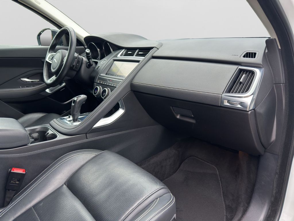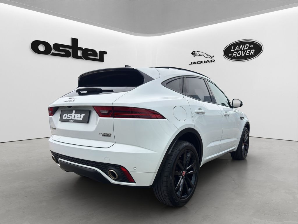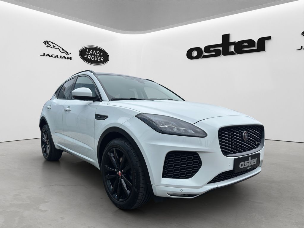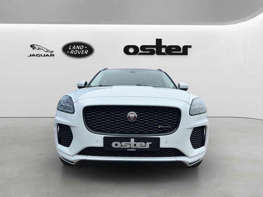 Airbag Fahrer-/Beifahrerseite, Ambiente Interieurbeleuchtung, Antriebsart: Allradantrieb, Audiosystem Meridian 380 Watt Premium-Klangsystem (CD/DVD), Außenspiegel elektr. verstell-, heiz- und anklappbar, mit Abblendautomatik, Memoryfunktion und Umfeldleuchte, Bluetooth-Schnittstelle, Dachhimmel Morzine in Ebony, Design- und Ausstattungslinie R-Dynamic, Edelstahlpedale, Einparkhilfe vorn und hinten, Einschaltautomatik für Fahrlicht / Lichtsensor, Einstiegsblenden (Edelstahl) mit Schriftzug, Elektr. Bremskraftverteilung (EBD), Elektron. Traktionskontrolle, Fahrassistenz-System: Antriebsmomentkontrolle (Torque Vectoring), Fahrassistenz-System: Aufmerksamkeits-Assistent, Fahrassistenz-System: Autonomer Notbrems-Assistent (AEB), Fahrassistenz-System: Berganfahrhilfe (Hill-Holder), Fahrassistenz-System: Fernlichtassistent (Intelligent Light System), Fahrassistenz-System: Spurhalteassistent, Fußgänger-Schutzsystem: Airbag für Fußgänger, Gepäckraumabdeckung / Rollo, Gepäckraumbeleuchtung, Getriebe Automatik - (9-Stufen), Getränkehalter vorn mit Abdeckung, Heckklappenbetätigung elektrisch, Heckleuchten LED, Heckscheibe heizbar, Heckspoiler, InControl Touch Pro Infotainment-System (10 Zoll Farbdisplay), InControl-Connect-Paket Pro, Innenspiegel mit Abblendautomatik, Isofix-Aufnahmen für Kindersitz im Fond, JaguarVoice Sprachsteuerung, Karosserie: 5-türig, Kindersicherung elektrisch, Klimaautomatik 2-Zonen, Kopf-Airbag-System (Windowbag), Lenkrad (Leder - R-Dynamic Emblem) mit Multifunktion, Lenkrad mit Schaltwippen/-tasten (Mattchrom), Leseleuchten im Fond, Lichtassistent (Coming Home, Leaving Home), Lufteinlassblende Chrom, Make-up-Spiegel im Fond beleuchtet, Mittelarmlehne vorn mit Ablagefach, Motor 2,0 Ltr. - 183 kW Turbo KAT, Navigationssystem Pro, Nebelschlussleuchte integriert, Otto-Partikelfilter (GPF), Park-Paket (Einparkhilfe), Parkbremse elektronisch (EPB), Radioempfang digital (DAB+), Radstand 2681 mm, Reifen-Reparaturset, Reifendruck-Kontrollsystem, Rückfahrkamera, Rücksitzlehne geteilt/klappbar, Schadstoffarm nach Abgasnorm Euro 6d-TEMP, Scheibenrahmen schwarz, Scheinwerfer LED mit LED-Signatur, Seitenairbag vorn, Smartphone-Paket, Sportsitze Leder, Stop-Start-Anlage, Taschenhaken im Gepäckraum, Türentriegelung automatisch (bei Unfall), Uni-Lackierung, Verzurrösen Koffer-/Laderaum, Warnanlage für Sicherheitsgurte