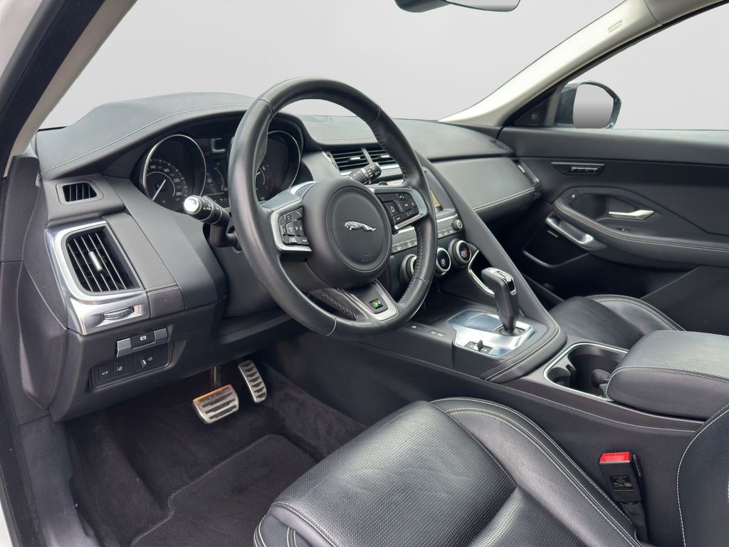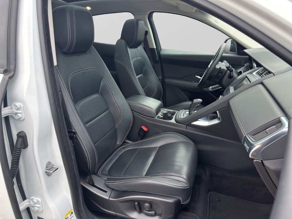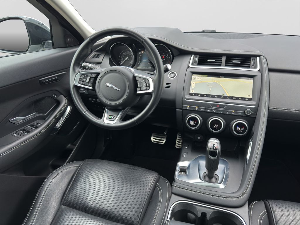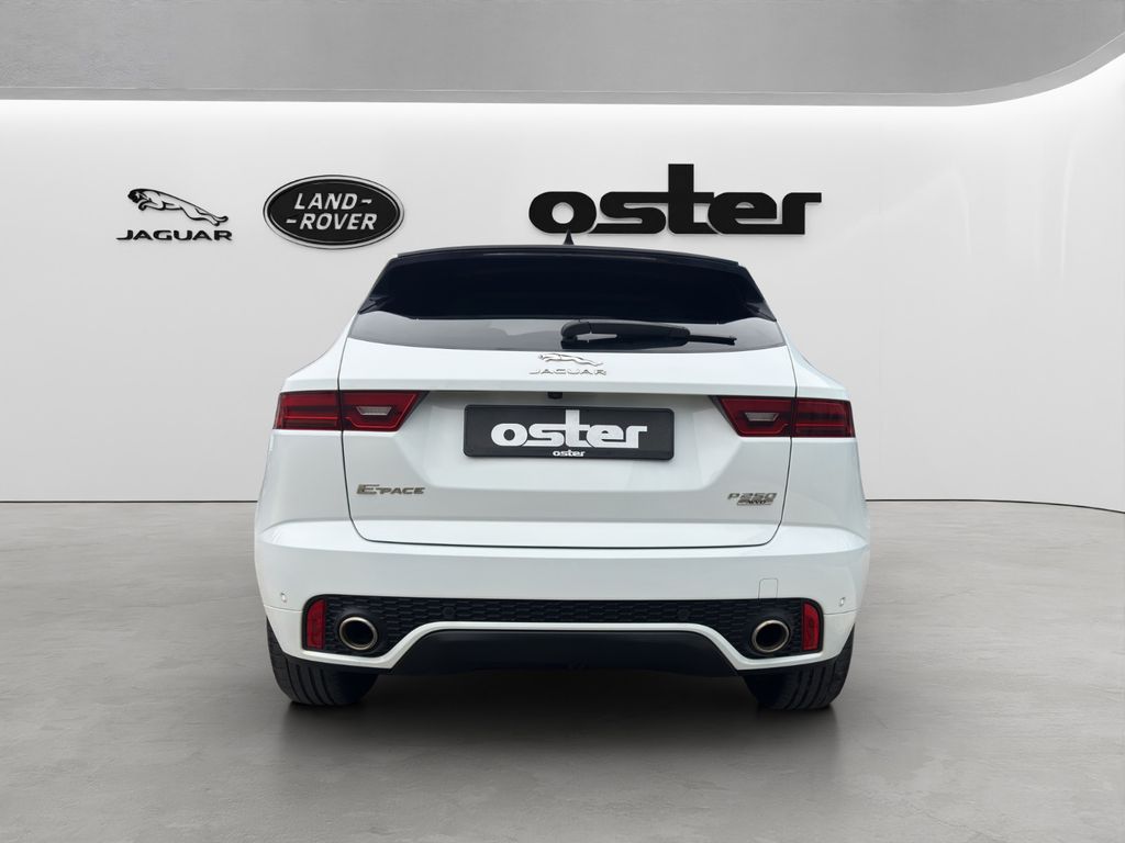 Airbag Fahrer-/Beifahrerseite, Ambiente Interieurbeleuchtung, Antriebsart: Allradantrieb, Audiosystem Meridian 380 Watt Premium-Klangsystem (CD/DVD), Außenspiegel elektr. verstell-, heiz- und anklappbar, mit Abblendautomatik, Memoryfunktion und Umfeldleuchte, Bluetooth-Schnittstelle, Dachhimmel Morzine in Ebony, Design- und Ausstattungslinie R-Dynamic, Edelstahlpedale, Einparkhilfe vorn und hinten, Einschaltautomatik für Fahrlicht / Lichtsensor, Einstiegsblenden (Edelstahl) mit Schriftzug, Elektr. Bremskraftverteilung (EBD), Elektron. Traktionskontrolle, Fahrassistenz-System: Antriebsmomentkontrolle (Torque Vectoring), Fahrassistenz-System: Aufmerksamkeits-Assistent, Fahrassistenz-System: Autonomer Notbrems-Assistent (AEB), Fahrassistenz-System: Berganfahrhilfe (Hill-Holder), Fahrassistenz-System: Fernlichtassistent (Intelligent Light System), Fahrassistenz-System: Spurhalteassistent, Fußgänger-Schutzsystem: Airbag für Fußgänger, Gepäckraumabdeckung / Rollo, Gepäckraumbeleuchtung, Getriebe Automatik - (9-Stufen), Getränkehalter vorn mit Abdeckung, Heckklappenbetätigung elektrisch, Heckleuchten LED, Heckscheibe heizbar, Heckspoiler, InControl Touch Pro Infotainment-System (10 Zoll Farbdisplay), InControl-Connect-Paket Pro, Innenspiegel mit Abblendautomatik, Isofix-Aufnahmen für Kindersitz im Fond, JaguarVoice Sprachsteuerung, Karosserie: 5-türig, Kindersicherung elektrisch, Klimaautomatik 2-Zonen, Kopf-Airbag-System (Windowbag), Lenkrad (Leder - R-Dynamic Emblem) mit Multifunktion, Lenkrad mit Schaltwippen/-tasten (Mattchrom), Leseleuchten im Fond, Lichtassistent (Coming Home, Leaving Home), Lufteinlassblende Chrom, Make-up-Spiegel im Fond beleuchtet, Mittelarmlehne vorn mit Ablagefach, Motor 2,0 Ltr. - 183 kW Turbo KAT, Navigationssystem Pro, Nebelschlussleuchte integriert, Otto-Partikelfilter (GPF), Park-Paket (Einparkhilfe), Parkbremse elektronisch (EPB), Radioempfang digital (DAB+), Radstand 2681 mm, Reifen-Reparaturset, Reifendruck-Kontrollsystem, Rückfahrkamera, Rücksitzlehne geteilt/klappbar, Schadstoffarm nach Abgasnorm Euro 6d-TEMP, Scheibenrahmen schwarz, Scheinwerfer LED mit LED-Signatur, Seitenairbag vorn, Smartphone-Paket, Sportsitze Leder, Stop-Start-Anlage, Taschenhaken im Gepäckraum, Türentriegelung automatisch (bei Unfall), Uni-Lackierung, Verzurrösen Koffer-/Laderaum, Warnanlage für Sicherheitsgurte