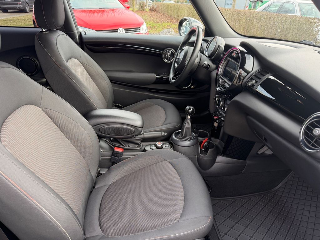 Audiosystem: Radio MINI Standard, Autom. Begleitfunktion der Beleuchtung (Follow me home), AUX-IN-Anschluss (AUX-IN), Außenspiegel elektr. verstellbar, Außenspiegel schwarz, Bremsassistent, Bremsenergierückgewinnung, Dach Wagenfarbe, Dachspoiler, Dynamische Bremsleuchte, Elektron. Bremskraftverteiler, Elektron. Sperrdifferential, Exterieurumfänge Sidescuttles mit integrierten Blinkern, Getränkehalter, Innenausstattung: Color-Line Carbon Black, Innenausstattung: Türverkleidungen und Seitenverkleidung Carbon Black, Innenraumfilter: Heizungsanlage mit Mikrofilter, Isofix-Aufnahmen für Kindersitz, Karosserie: 3-türig, Kopf-Airbag-System hinten, Kopf-Airbag-System vorn, Kopfstützen, Lenksäule (Lenkrad) mechan. verstellbar, Modellpflege, Motor 1,5 Ltr. - 75 kW 12V, Nichtraucher-Paket, Otto-Partikelfilter (OPF), Personalisierungssystem (Personal Profile), Rücksitzlehne geteilt/klappbar, Schadstoffarm nach Abgasnorm Euro 6d-TEMP, Schalt-/Wählhebelgriff Leder, Scheibenwaschdüsen und Außenspiegel beheizt, Seitenairbag vorn, Service-System: Intelligenter Notruf inkl. TeleServices, Sitzausstattung: 4-Sitzer, Sitzbezug / Polsterung: Stoff Firework, Sonnenblenden mit Spiegel, Start-Stop-Knopf, Start/Stop-Anlage (Funktion), USB-Schnittstelle, Wärmeschutzverglasung getönt, Zentralinstrument mit LED-Ring