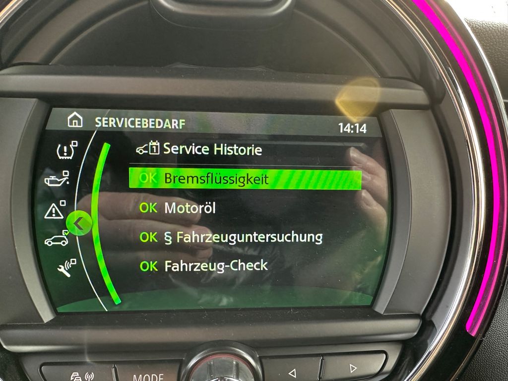 Sonderausstattung:Ablage-Paket, Audiosystem MINI Visual Boost (inkl. LC-Display), Ausstattungs-Paket: Connected Media, Blinkleuchten Weiß, Bordcomputer, Dachhimmel Anthrazit, Diebstahlsicherung für Räder (Felgenschlösser), Fußmatten Velours, Fzg. ohne Modell-Schriftzug, Innenausstattung: Chrome-Line, Innenausstattung: Interieur-Oberfläche Piano Black, Klimaautomatik 2-Zonen mit autom. Umluft-Control, Lenkrad (Sport/Leder), Licht-Paket, Metallic-Lackierung Midnight Black, MINI Connected (Schnittstelle), Multifunktion für Lenkrad, Park-Distance-Control (PDC), Reifen-Reparaturset (Mobility-Pack), Sitz vorn rechts höhenverstellbar, Sitzheizung vorn, kompletter Service NEU !!! Inspektion mit Bremse vorne und hinten, Scheiben und Klötze !!! Dekra-Hauptuntersuchung NEU !!!