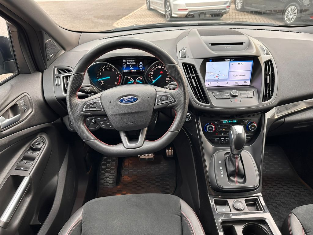 Antischlupfregelung (ASR), Audio-Navigationssystem Ford SD (mit Ford SYNC), Audiobedienung am Lenkrad, Außenspiegel elektr. verstell- und heizbar, Body-Styling-Paket, Bordcomputer, Brillenfach in Dachhimmel / Dachkonsole integriert, Dachreling, Dachspoiler Wagenfarbe, Dimmer Instrumentenbeleuchtung, Einstiegsleisten (Edelstahl), Elektr. Bremskraftverteilung (EBD), Fahrassistenz-System: Berganfahr-Assistent (Hill-Holder), Fahrassistenz-System: Notbrems-Assistent, Fahrassistenz-System: Park-Assistent (Active Park Assist), Fensterheber elektrisch vorn + hinten mit Komfortschließung, Fußmatten Velours, Fußraumleuchte vorn, Innenausstattung: Aluminium-Dekor, Innenraumfilter: Staub- und Pollenfilter, Intelligent Protection System (IPS), Isofix-Aufnahmen für Kindersitz, Karosserie: 5-türig, Klimaautomatik 2-Zonen, Kühlergrill schwarz, Lendenwirbelstütze Sitz vorn links, Lendenwirbelstütze Sitz vorn rechts, Lenkrad mit Schaltwippen, Lenksäule (Lenkrad) höhen-/längsverstellbar, Leuchtweitenregelung, LM-Felgen, Mittelarmlehne hinten, Modellpflege, Motor 1,5 Ltr. - 110 kW EcoBoost KAT, My Key (2. Fahrzeugschlüssel programmierbar), Otto-Partikelfilter (OPF), Parkbremse elektrisch, Pedale Aluminium, Radstand 2690 mm, Reifen-Reparaturkit, Reifendruck-Kontrollsystem, Rücksitzlehne geteilt/klappbar (60:40), Schadstoffarm nach Abgasnorm Euro 6d-TEMP, Scheinwerfer mit abgedunkelten Hintergrund, Sicht-Paket, Sitz vorn links höhenverstellbar, Sitzbezug / Polsterung: Stoff/Leder, Sitzheizung vorn, Sonderlackierung Frost-Weiß, Sonnenblende links mit Spiegel (beleuchtet), Sonnenblende rechts mit Spiegel (beleuchtet), Sportsitze vorn, Start/Stop-Anlage, Steckdose (12V-Anschluß) im Koffer-/Laderaum, Türgriffe außen Wagenfarbe, Verglasung getönt, Warnanlage für Sicherheitsgurte hinten