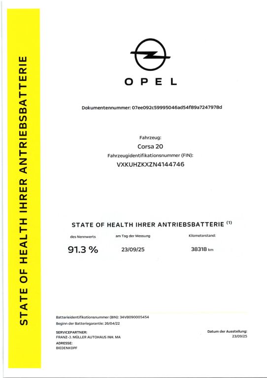 6 Lautsprecher, Airbag Fahrer-/Beifahrerseite, Akustischer Fußgängerschutz (Außensound), Audiosystem Multimedia, B-Säulen schwarz Hochglanz (außen), Bordcomputer, Bremsassistent, Elektrische Schnellheizung (Quickheat), Elektrofahrzeug, Elektromotor 100 kW (cont. 57 kW), Elektron. Stabilitäts-Programm Plus (ESP), Fahrassistenz-System: Berganfahr-Assistent (HSA, Hill Start Assist), Fahrassistenz-System: Müdigkeitserkennungs-Sensor, Fahrassistenz-System: Spurhalteassistent, Fahrassistenz-System: Verkehrszeichenerkennung, Farbdisplay (7 Zoll), Fensterheber elektrisch vorn + hinten, Fensterheber vorn elektr. mit Einklemmschutz, Fernbedienung zur Aktivierung der Heizung/Klimaanlage, Feststellbremse elektrisch, Gepäckraumbeleuchtung (LED), Heckscheibenwischer, Innenausstattung: Dekorleisten Silber / Schwarz (Grau), Isofix-Aufnahmen für Kindersitz an Beifahrersitz, Isofix-Aufnahmen für Kindersitz an Rücksitz, Karosserie: 5-türig, Klimaautomatik, Kopf-Airbag-System, Ladekabel mit Schukostecker (Mode 2), Lenkrad (Sport/Leder - 3-Speichen, unten abgeflacht) mit Multifunktion, Lenksäule (Lenkrad) verstellbar, Leseleuchten vorn (2), LM-Felgen, Mittelarmlehne vorn mit Ablagefach, Motor Starterknopf, Nebelschlussleuchte, Opel Connect, Reifen-Reparaturkit, Rücksitzbank geteilt/klappbar (60:40), Scheinwerfer LED, Seitenairbag vorn, Sicht-Paket, Sitzbezug / Polsterung: Stoff / Ledernachbildung, Stoßfänger Wagenfarbe, Türgriffe außen Wagenfarbe, Türgriffe innen verchromt, Warnanlage für Sicherheitsgurt, Beifahrerseite, Warnanlage für Sicherheitsgurt, Fahrerseite, Warnanlage für Sicherheitsgurte hinten, Wärmepumpe zur Reichweitenoptimierung...