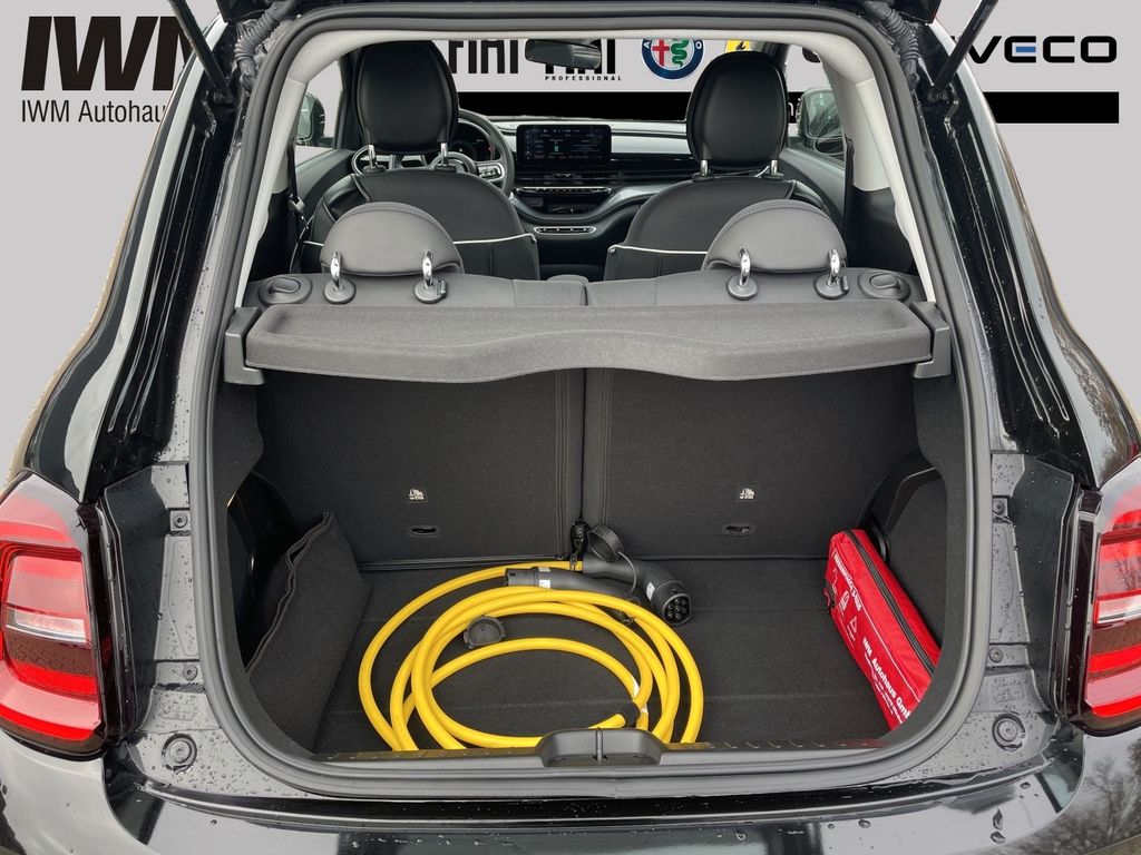 6 Lautsprecher, Airbag Fahrer-/Beifahrerseite, Ambiente-Beleuchtung, Antriebs-Schlupfregelung (ASR), Armaturenbrett farbig, Autom. Begleitfunktion der Beleuchtung (Follow me home), Außenspiegel Wagenfarbe, Beifahrerairbag abschaltbar, Einschaltautomatik für Fahrlicht / Lichtsensor, Elektromotor 87 kW (cont. 43 kW), Fahrassistenz-System: Aufmerksamkeits-Assistent, Fahrassistenz-System: Autonomer Notbrems-Assistent (AEB), Fahrassistenz-System: Bremsassistent, Fahrassistenz-System: Spurhalteassistent, Fahrassistenz-System: Verkehrszeichenerkennung, Fahrmodusschalter, Halterung Smartphone, Heckleuchten LED, Heckscheibe heizbar, HV-Batterie 42 kWh (Lithium-Ionen), Infotainment-System: UConnect 5 mit Navigationssystem, DAB+ und Bluetooth-Freisprecheinrichtung (Touchscreen 10,25"), Instrumentenanzeige Farbdisplay, 7 Zoll, Karosserie: 3-türig, Klimaautomatik, Kopf-Airbag-System vorn, Kopf-Airbag-System vorn und hinten, Kopfstützen hinten, Ladekabel mit Typ 2-Stecker (Mode 3), Lenkrad mit Multifunktion, Lenksäule (Lenkrad) höhenverstellbar, Mobile Online Dienste UConnect Live, Nebelschlussleuchte, Notrufsystem (eCall), One Pedal Drive (elektronisches Gaspedal), Parkbremse elektrisch, Radioempfang digital (DAB+), Schnellladefunktion 85 kW (DC), Seitenairbag vorn, Seitenschutzleisten schwarz glänzend, Sitzbezug / Polsterung: Stoff, Sitzverstellung vorn links (4-fach), Sitzverstellung vorn rechts (4-fach), Smartphone Schnittstelle (Apple CarPlay & Android Auto), Sonnenblenden mit Spiegel (beleuchtet), Stahlfelgen 6x15, Steckdose (12V-Anschluß) vorn, Tagfahrlicht LED, USB-Schnittstelle, Wärmeschutzverglasung