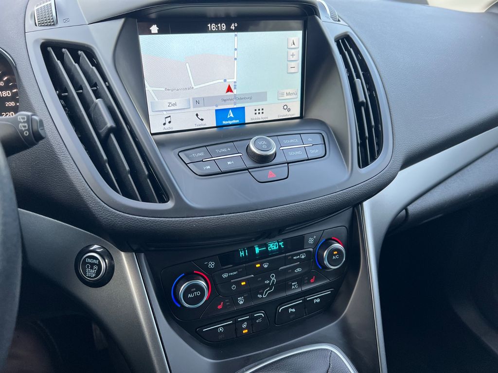 Antischlupfregelung (ASR), Audio-Navigationssystem Ford SD (mit Ford SYNC), Audiobedienung am Lenkrad, Außenspiegel elektr. verstell- und heizbar, Bordcomputer, Brillenfach in Dachhimmel / Dachkonsole integriert, Chromeinfassung Seitenscheiben, Dachreling (Aluminium), Dachspoiler Wagenfarbe, Dimmer Instrumentenbeleuchtung, Easy-Driver-Paket, Elektr. Bremskraftverteilung (EBD), Fahrassistenz-System: Berganfahr-Assistent (Hill-Holder), Fahrassistenz-System: Notbrems-Assistent, Fensterheber elektrisch vorn + hinten mit Komfortschließung, Fußraumleuchte vorn, Innenausstattung: Aluminium-Dekor, Innenraumfilter: Staub- und Pollenfilter, Intelligent Protection System (IPS), Isofix-Aufnahmen für Kindersitz, Karosserie: 5-türig, Klimaautomatik 2-Zonen, Kühlergrill silber, Lenkrad mit Schaltwippen, Lenksäule (Lenkrad) höhen-/längsverstellbar, Leuchtweitenregelung, Modellpflege, Motor 1,5 Ltr. - 88 kW EcoBoost KAT, My Key (2. Fahrzeugschlüssel programmierbar), Parkbremse elektrisch, Radstand 2690 mm, Reifen-Reparaturkit, Reifendruck-Kontrollsystem, Rücksitzlehne geteilt/klappbar (60:40), Schadstoffarm nach Abgasnorm Euro 6, Schalt-/Wählhebelgriff Leder, Schaltpunktanzeige, Sitz vorn links höhenverstellbar, Sonnenblende links mit Spiegel (beleuchtet), Sonnenblende rechts mit Spiegel (beleuchtet), Sportsitze vorn, Start/Stop-Anlage, Steckdose (12V-Anschluß) im Koffer-/Laderaum, Türgriffe außen Wagenfarbe, Unterfahrschutz, Unterfahrschutz hinten, Verglasung getönt, Warnanlage für Sicherheitsgurte hinten, Zierleisten unterhalb Seitenscheiben Chrom-Dekor