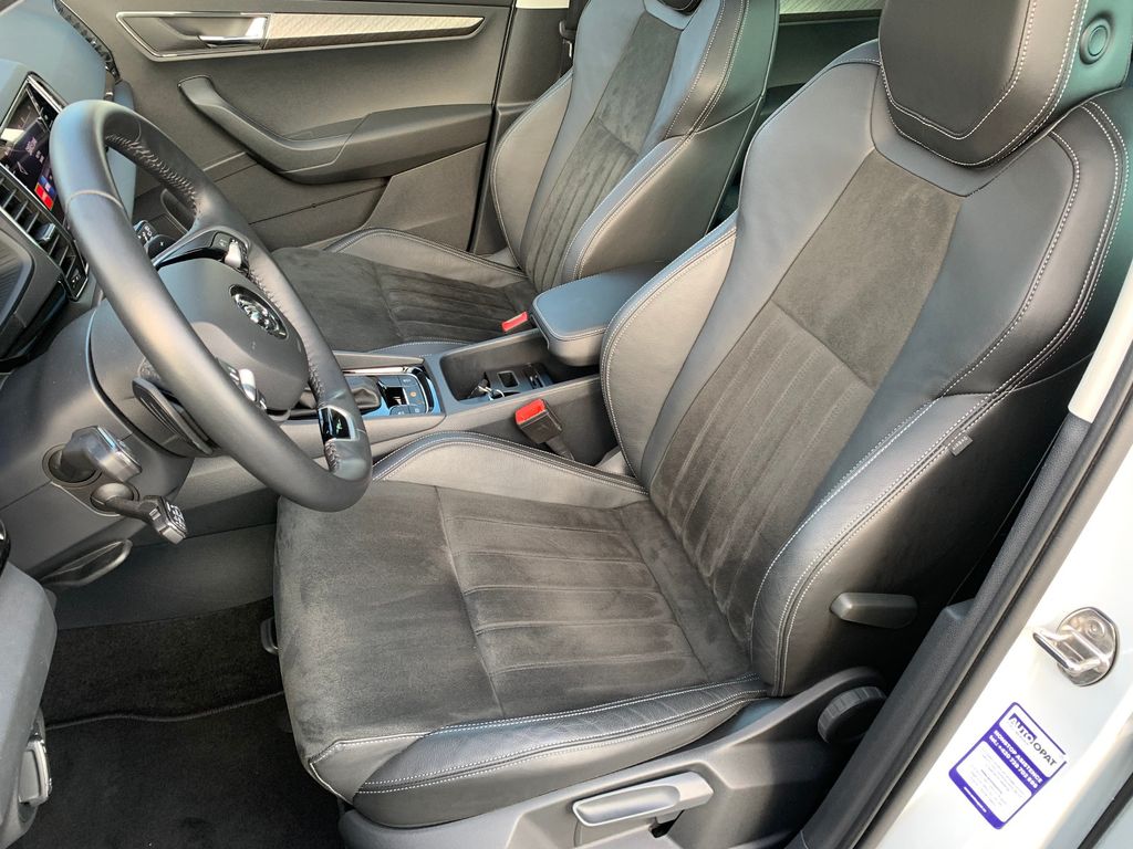Dieser gepflegte SKODA Karoq aus 2024 präsentiert sich in makellosem Zustand mit nur einem Vorbesitzer. Der 1.5-Liter-Benzinmotor mit 150 PS bietet dank Automatikgetriebe und Frontantrieb ein komfortables Fahrerlebnis. Das SUV überzeugt durch seine umfangreiche Ausstattung: Panorama-Glasdach, elektrische Heckklappe und 3-Zonen-Klimaautomatik sorgen für höchsten Komfort. Die Alcantara-Innenausstattung in Schwarz harmoniert perfekt mit der weißen Metallic-Lackierung.