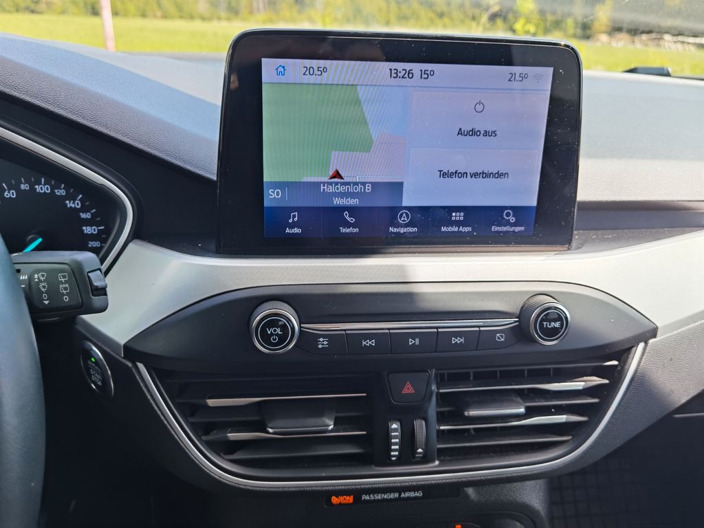 Airbag Beifahrerseite abschaltbar, Antischlupfregelung (ASR), Audio-Navigationssystem Ford mit AppLink, Außenspiegel elektr. anklappbar, Außenspiegel elektr. verstell- und heizbar, Blinkleuchte in Außenspiegel integriert, Bord-/Verbrauchscomputer, Chromeinfassung Seitenscheiben, Dachhimmel Stoff, Dachreling (Aluminium), Dachspoiler Wagenfarbe, Dimmer Instrumentenbeleuchtung, Elektr. Bremskraftverteilung, Fahrassistenz-System: Berganfahr-Assistent (Hill-Holder), Fahrassistenz-System: Notbrems-Assistent, Fahrassistenz-System: Post-Collision-System, Fahrassistenz-System: Pre-Collision-System, Fahrassistenz-System: Spurhalteassistent, Farbdisplay für Bordcomputer, Fensterheber elektrisch vorn + hinten mit Komfortschließung, FordPass Connect inkl. eCall, Fußmatten Velours - vorn, Gepäckraumabdeckung / Rollo, Innenraumfilter: Staub- und Pollenfilter, Intelligent Protection System (IPS), Intelligenter Geschwindigkeits-Begrenzer, Isofix-Aufnahmen für Kindersitz, Karosserie: 5-türig, Kopfstützen hinten mechan. verstellbar (3 Stück), Kopfstützen vorn 4-fach verstellbar, Laderaumboden verstellbar, Lenksäule (Lenkrad) höhen-/längsverstellbar, LM-Felgen, Mittelkonsole Premium, Motor 1,5 Ltr. - 88 kW EcoBlue TDCi KAT, My Key (2. Fahrzeugschlüssel programmierbar), Nebelscheinwerfer mit statischem Abbiegelicht, Parkbremse elektrisch mit Auto-Hold-Funktion, Parkpilotsystem vorn und hinten, Reifendruck-Kontrollsystem, Reserverad als Notrad, Rücksitzlehne geteilt/klappbar (60:40), Schadstoffarm nach Abgasnorm Euro 6d-TEMP, Schalt-/Wählhebelgriff Leder, Schaltpunktanzeige, Scheinwerfer-Assistent mit Tag-/Nachtsensor, SCR-System (AdBlue-Technologie), Sitz vorn links höhenverstellbar, Sonnenblende links mit Spiegel, Sonnenblende rechts mit Spiegel, Sportsitze vorn, Start/Stop-Anlage, Steckdose (12V-Anschluß) im Koffer-/Laderaum, Verglasung getönt, Warnanlage für Sicherheitsgurte hinten, Warnanlage für Sicherheitsgurte vorn