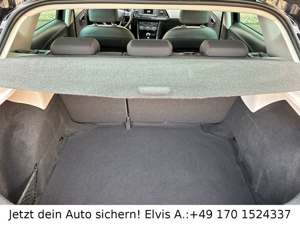 Ablagetasche an Vordersitzlehnen, Airbag Beifahrerseite abschaltbar, Airbag Fahrer-/Beifahrerseite, Antriebs-Schlupfregelung (ASR), AUX-IN-Anschluss und 2 x USB-Anschluss, Außenspiegel elektr. anklappbar, Außenspiegel elektr. verstell-, heiz- und anklappbar, beide, Außenspiegel mit Spiegelabsenkung, rechts, Außenspiegel und Türgriffe außen in Wagenfarbe, Außentemperaturanzeige, Blinkleuchten LED in Außenspiegel integriert, Bordcomputer, Bremsassistent, Doppelscheinwerfer, Elektron. Differentialsperre (EDS), Fahrassistenz-System: Berganfahr-Assistent (Hill-Holder), Fahrassistenz-System: Berganfahr-Assistent und Elektron. Differentialsperre, Fahrassistenz-System: Fahrprofilauswahl (SEAT Drive Profile), Fahrassistenz-System: Umfeldbeobachtungssystem (Front assist) mit City-Notbremsfunktion, Fensterheber elektrisch hinten, Handschuhfach beleuchtet, Heckleuchten LED, Innenausstattung: Chrom-Applikationen, Isofix-Aufnahmen für Kindersitz, Karosserie: 5-türig, Klimaanlage Climatronic 2-Zonen, Knieairbag Fahrerseite, Kopf-Airbag-System, Kopfstützen hinten (3-fach), Kopfstützen vorn verstellbar, Lendenwirbelstütze Sitz vorn links, verstellbar, Lendenwirbelstütze Sitz vorn rechts, verstellbar, Lenkrad (Sport/Leder), LM-Felgen, Mittelkonsole vorn mit Mittelarmlehne, Becherhalter, Ablagebox und Luftdüsen hinten, Modellpflege, Motor 1,4 Ltr. - 110 kW 16V TSI ACT, Parkbremse elektrisch, Reifenkontroll-Anzeige, Rücksitzlehne geteilt/klappbar (1/3-2/3), Schadstoffarm nach Abgasnorm Euro 6, Schalt-/Wählhebelgriff Leder, SEAT Media-System Plus, Seitenairbag, Seitenscheiben hinten und Heckscheibe abgedunkelt, Sitz vorn links höhenverstellbar, Sitz vorn rechts höhenverstellbar, Sonnenblende links mit Spiegel (beleuchtet), Sonnenblende rechts mit Spiegel (beleuchtet), Sport-Fahrwerk FR / Cupra, Sportsitze vorn, Start/Stop-Anlage, Stau-/Ablagefach unter Sitze vorn, Steckdose (12V-Anschluß) vorn, Stoßfänger lackiert, Wärmeschutzverglasung