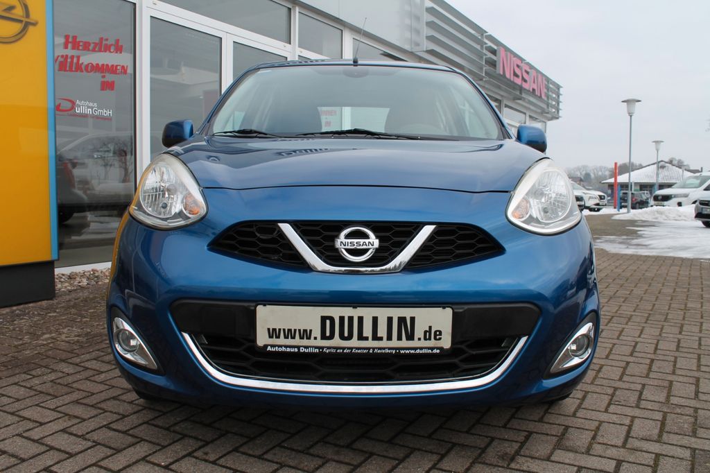 Airbag Beifahrerseite abschaltbar, Airbag Fahrer-/Beifahrerseite und Seitenairbag vorn, Außenspiegel elektr. verstellbar, Außenspiegel Wagenfarbe, Bremsassistent (Nissan Brake-Assist), Comfort-Paket, Dachspoiler, Fernentriegelung Tankklappe, Frontscheibe Verbundglas, Gepäckraumabdeckung / Rollo, Heckscheibe heizbar, Innenspiegel abblendbar, Isofix-Aufnahmen für Kindersitz, Karosserie: 5-türig, Kopf-Airbag-System, Kopfstützen hinten verstellbar (links/rechts und mitte), Lenksäule (Lenkrad) höhenverstellbar, Leseleuchte vorn, LM-Felgen, Modellpflege, Motor 1,2 Ltr. - 59 kW KAT, Reifendruck-Kontrollsystem, Reserverad als Notrad, Rücksitz geteilt/klappbar, Schadstoffarm nach Abgasnorm Euro 6, Schalt-/Wählhebelgriff Leder, Schaltpunktanzeige, Sitz vorn links höhenverstellbar, Sitzbezug / Polsterung: Stoff, Sonnenblenden mit Spiegel, Steckdose (12V-Anschluß) in Mittelkonsole, Stoßfänger Wagenfarbe, Türverkleidung mit Stoffeinsatz, Verglasung getönt