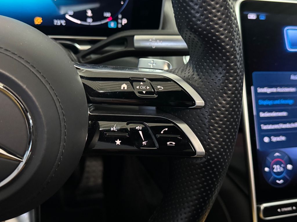 Airbag Fahrer-/Beifahrerseite, Ambiente-Beleuchtung (erweiterter Umfang), Außenspiegel mit Umfeldleuchte und Projektionsfunktion, Beckenairbag vorn (Pelvisbag), DAB-Tuner (Radioempfang digital), Design- und Ausstattungslinie AMG Line, Easy-Entry Funktion, Fahrassistenz-System: Attention-Assist (Müdigkeitserkennungs-Sensor), Fahrassistenz-System: Seitenwind-Assistent, Fahrassistenz-System: Verkehrszeichenerkennung, Fensterheber elektrisch vorn + hinten, Heckleuchten LED, Induktionsladeschale für Smartphone, Innenausstattung: Holz Pappel, Innenspiegel und Außenspiegel links mit Abblendautomatik, Karosserie: 4-türig, Klimaautomatik (Thermotronik), Lenkrad mit Multifunktion, Memory-Paket, Mercedes-Benz Notrufsystem, Mittelkonsole Glasoptik, schwarz, Motor 2,9 Ltr. - 243 kW CDI KAT, Multimediasystem (Connect 20 Premium), Reifendruck-Kontrollsystem, Schadstoffarm nach Abgasnorm Euro 6d, Seitenairbag (Sidebag) vorn, Service-System: Fingerabdruck-Scanner für MBUX, Service-System: MBUX Augmented Reality für Navigation, Service-System: MBUX Navigation Premium, Servoschliessung für Türen, Smartphone integriert, Zentral-Display (OLED)