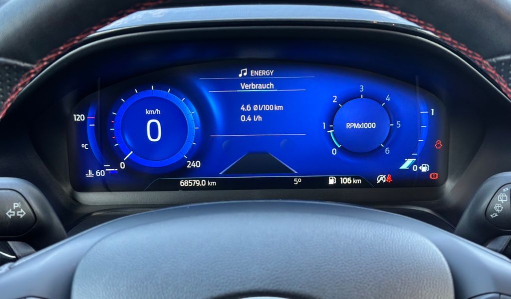 Ambiente-Beleuchtung vorn (LED), Antischlupfregelung (ASR), Audio-Navigationssystem Ford mit AppLink, Außenspiegel elektr. anklappbar, Außenspiegel elektr. verstell- und heizbar, Body-Styling-Paket, Dachhimmel Stoff, dunkel, Eco-Anzeige für verbrauchsoptimiertes Fahren (EcoCoach), Einparkhilfe hinten, Fahrassistenz-System: Berganfahr-Assistent (Hill-Holder), Fahrassistenz-System: Falschfahrer-Warnfunktion, Fahrassistenz-System: Fernlichtassistent (Scheinwerfer mit Abblendautomatik), Fahrassistenz-System: Notbrems-Assistent, Fahrassistenz-System: Post-Collision-System, Fahrassistenz-System: Pre-Collision-System, Fahrassistenz-System: Spurhalteassistent mit Müdigkeitserkennungs-Sensor, Fahrassistenz-System: Verkehrsschildassistent, Farbdisplay für Bordcomputer, Fensterheber elektrisch vorn + hinten mit Komfortschließung, FordPass Connect inkl. eCall, Fußmatten Teppich, Heckleuchten LED, Innenraumfilter: Staub- und Pollenfilter, Intelligent Protection System (IPS), Intelligenter Geschwindigkeits-Begrenzer, Isofix-Aufnahmen für Kindersitz, Karosserie: 5-türig, Kombiinstrument Digitalanzeige 12,3 Zoll, Kopfstützen hinten mechan. verstellbar (3 Stück), Lackierung Blazer-Blau uni, Laderaumboden variabel (Ford Megabox), Lendenwirbelstütze Sitz vorn links, Lenkrad mit Schaltwippen, Lenksäule (Lenkrad) höhen-/längsverstellbar, LM-Felgen, Motor 1,5 Ltr. - 88 kW EcoBlue TDCi KAT, My Key (2. Fahrzeugschlüssel programmierbar), Nebelscheinwerfer LED, Pedale Aluminium, Radstand 2588 mm, Reifen-Reparaturkit, Reifendruck-Kontrollsystem, Rücksitzlehne geteilt/klappbar (60:40), Schadstoffarm nach Abgasnorm Euro 6d, Scheinwerfer LED, Scheinwerfer-Assistent mit Tag-/Nachtsensor, Sitze vorn höhenverstellbar, Sonnenblende links mit Spiegel (beleuchtet), Sonnenblende rechts mit Spiegel (beleuchtet), Sport-Fahrwerk, Sportsitze vorn, Standard Variante, Start/Stop-Anlage, Türgriffe außen Wagenfarbe