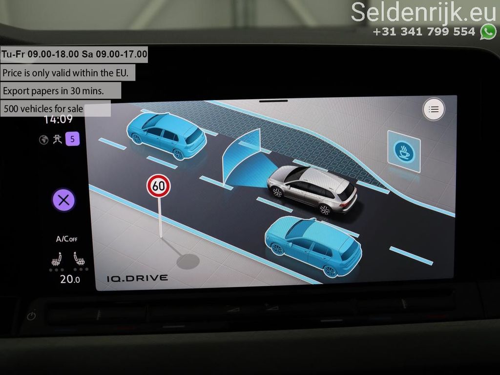 Dieser Volkswagen Golf vereint modernste Sicherheitssysteme. Die Verkehrszeichenerkennung unterstützt Sie bei jeder Fahrt und zeigt Ihnen unter anderem die aktuelle Geschwindigkeitsbegrenzung, Überholverbote und andere Verkehrszeichen an. Der Spurhalteassistent hält Sie automatisch in der Spur und verhindert so das Verlassen des Fahrzeugs. Der Frontkollisionswarner überwacht permanent den Abstand zu vorausfahrenden Fahrzeugen und greift bei drohender Kollision ein. Zusätzlich sorgen der Totwinkelassistent, die Berganfahrhilfe, die Müdigkeitserkennung, der Notbremsassistent und das Reifendruckkontrollsystem für erhöhte Sicherheit.