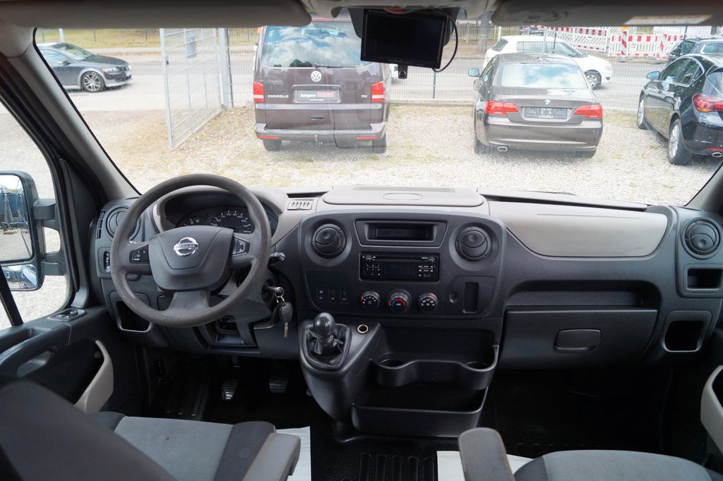 Ablagegalerie, Airbag Fahrerseite, Audiobedienung am Lenkrad, Audiosystem: Radio mit CD-Player mit Bluetooth, Außenspiegel elektr. verstell- und heizbar, Begrenzungsleuchten seitlich, Bordcomputer, Design- und Ausstattungslinie COMFORT, Drehzahlmesser, Rückfahr kamera, Elektr. Bremskraftverteilung (EBD), Fahrassistenz-Paket, Fahrassistenz-System: Berganfahr-Assistent, Heck-Verglasungs-Paket, Heckscheibenwischer, Karosserie/Aufbau: Kasten Hochraum Doppelkabine, Karosserie/Aufbau: Kasten Hochraum Standard, Kraftstofftank: 105 Ltr., Lenksäule (Lenkrad) höhenverstellbar, Motor 2,3 Ltr. - 125 kW dCi Diesel KAT, Nebelschlussleuchte, Radstand 4332 mm, Reserverad in Fahrbereifung, Schadstoffarm nach Abgasnorm Euro 6, Schaltpunktanzeige, Schiebetür Lade-/Fahrgastraum rechts mit Verglasung, Schmutzfänger vorn, Sicherheits-Paket, Sitze im Fahrerhaus: Beifahrerdoppelsitz, Start/Stop-Anlage Motor, Steckdose 12V im Lade-/Fahrgastraum, Trittstufe hinten, Wärmeschutzverglasung mit UV-Schutz