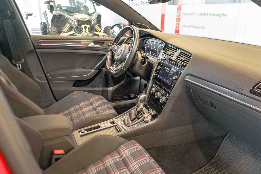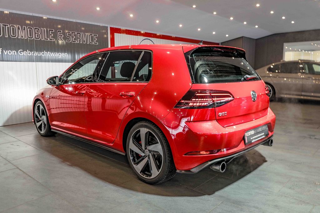3-Punkt-Sicherheitsgurt hinten mitte, Abbiegelicht, Active Info-Display (Instrumentenanzeige digital), Airbag Beifahrerseite abschaltbar, Airbag Fahrer-/Beifahrerseite, Ambiente-Beleuchtung, Antriebs-Schlupfregelung (ASR), Audiosystem Composition Media (Touchscreen, Radio/CD-Player, MP3, Bluetooth), Ausstattung GTI, Auto-Hold-Funktion, Automatische Fahrlichtschaltung (ALS) mit Leaving Home / Coming-Home-Lichtfunktion, Außenspiegel asphärisch, links, Außenspiegel elektr. verstell- und heizbar, Außenspiegel konvex, rechts, Außenspiegel lackiert, Außenspiegel mit autom. Absenkfunktion, rechts, Blinkleuchte in Außenspiegel integriert, Bremsassistent, Bremssättel Rot lackiert, Chrom-Paket 2, Dachhimmel Stoff, schwarz, Dachspoiler, Differentialsperre (Vorderachse), Doppeltonhorn, Durchladeeinrichtung (Mittelarmlehne hinten), Einparkhilfe vorn und hinten, Einstiegsleisten vorn beleuchtet, Elektron. Differentialsperre (EDS), Elektron. Differentialsperre (XDS), Fahrassistenz-System: Anhänger-Stabilisierungs-Programm, Fahrassistenz-System: Müdigkeitserkennung, Fahrassistenz-System: Umfeldbeobachtungssystem (Front assist) mit City-Notbremsfunktion, Frontscheibe Verbundglas getönt, Funkschlüssel (2) klappbar, Fußmatten Textil, Handschuhfach mit Kühlfunktion, Heckleuchten LED, dunkelrot, Blinkleuchten dynamisch, Heckscheibenwischer, Innenausstattung: Dekoreinlagen Honeycomb Black, Innenspiegel mit Abblendautomatik, Isofix-Aufnahmen für Kindersitz an Rücksitz, Karosserie: 5-türig, Klimaanlage Climatronic 2-Zonen, Knieairbag Fahrerseite, Kopf-Airbag-System vorn und hinten inkl. Seitenairbag vorn, Kopfstützen hinten (3-fach), Lautsprecher (8), Lendenwirbelstütze Sitz vorn links, Lendenwirbelstütze Sitz vorn rechts, Lenkrad (Sport/Leder) mit Multifunktion und Schaltfunktion, Lenksäule (Lenkrad) mechan. verstellbar, Höhen-/Längsverstellung, Leseleuchten vorn und hinten LED, Modellpflege, Motor 2,0 Ltr. - 180 kW TSI, Multifunktionsanzeige Premium (Farbdisplay), Nebelschlussleuchte, Parkbremse elektrisch, Pedale Edelstahl, Progressivlenkung, Reifenkontroll-Anzeige, Rücksitzlehne geteilt, Schadstoffarm nach Abgasnorm Euro 6, Schalt-/Wählhebelgriff Aluminium, Schublade / Ablagefach unter Sitz vorn links, Schublade / Ablagefach unter Sitz vorn rechts, Sicherheitsgurte vorn mit Gurtstraffer, höhenverstellbar, Sitz vorn links höhenverstellbar, Sitz vorn rechts höhenverstellbar, Sitzbezug / Polsterung: Stoff, Sitze: Top-Sportsitze vorn, Sonnenblenden mit Spiegel (beleuchtet), Stabilisator vorn, Start/Stop-Anlage, Steckdose 12V im Koffer-/Laderaum, Stoßfänger Sport-Design, lackiert, Türgriffe außen Wagenfarbe, Warnanlage für Sicherheitsgurte vorn