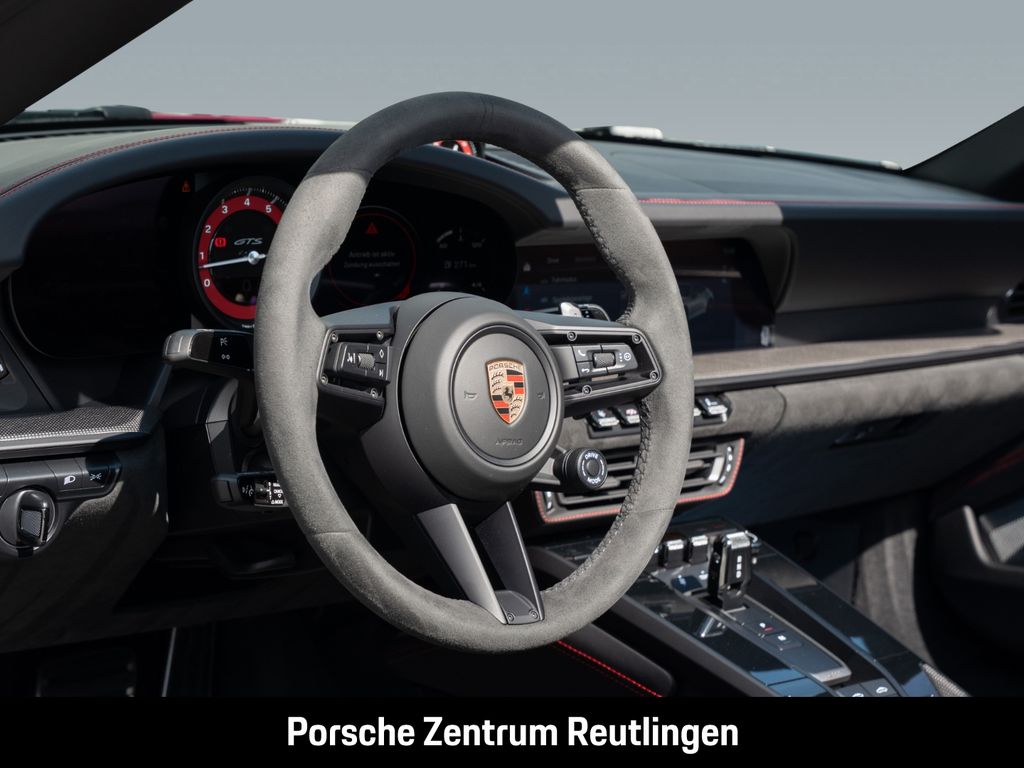 - Weiteres: Herzlich Willkommen in Ihrem Porsche Zentrum Reutlingen!. . Vielen Dank für Ihr Interesse. . Das angebotene Fahrzeug wird mit einer 12-monatigen Porsche Approved Garantie inkl. Porsche Assistance Mobilitätsgarantie versehen - diese ist bereits im Kaufpreis enthalten. Details zur Porsche Approved Garantie finden Sie unter: . https://www.porsche.com/germany/approvedused/porscheapproved/?gad_source=1&gclid=EAIaIQobChMI4cbftubPiwMVIZKDBx3n-SOFEAAYASAAEgLX9_D_BwE&gclsrc=aw.ds . . Gemeinsam mit der Porsche Financial Services GmbH, unserem exklusiven Partner rund um das Thema Finanzierung und Leasing, sowie weitere Highlights unterbreiten wir Ihnen gerne ein für Sie maßgeschneidertes Komplett -Angebot. . Sie wünschen ein Inzahlungnahme Angebot oder einen freien Ankauf Ihres aktuellen Fahrzeugs, auch hier sind wir sehr gerne für Sie da. . Kontaktieren Sie uns unter +49 7121-3015-0 oder info( at )porsche-reutlingen.de um mehr zu erfahren, sowie Ihren Traum von einem neuen Porsche zu verwirklichen!. Irrtümer, Änderungen, sowie Zwischenverkauf vorbehalten., (KQ2) „PORSCHE“ Schriftzug lackiert in Schwarz (hochglanz), (2D5) Exterieur-Paket lackiert in Schwarz (hochglanz), (AAK) „911“ Schriftzug lackiert in Exterieurfarbe, (UD1) LED-Türprojektoren „PORSCHE“ Schriftzug, (1P7) Porsche Dynamic Chassis Control (PDCC), (2UH) Liftsystem Vorderachse, (1N3) Servolenkung Plus, (0N5) Hinterachslenkung, (1LR) Bremssättel lackiert in Schwarz (hochglanz), (AVC) Luftdüsen Leder mit Lamellen Leder - karminrot, (Q1J) Adaptive Sportsitze Plus (18-Wege, elektrisch) mit Memory-Paket, (2ZF) GT-Sportlenkrad Race-Tex inklusive Lenkradheizung, (AFB) Fahrzeugschlüssel lackiert in Exterieurfarbe mit Schlüsseletui Race-Tex, (4A3) Sitzheizung vorn, (7V8) Zifferblatt Drehzahlmesser karminrot, (5TX) Interieur-Paket Carbon matt, (QE1) Ablagenpaket, (7M8) Türeinstiegsblenden Carbon matt, beleuchtet, (5XK) Sonnenblenden Race-Tex, (AVX) Konsole Innenspiegel Leder - karminrot, (6A7) Feuerlöscher, (9VJ) Burmester® High-End Surround Sound-System, (8JU) LED-Matrix Hauptscheinwerfer abgedunkelt inkl. Porsche Dynamic Light System Plus (PDLS Plus), (P14) Automatisch abblendende Innen-/Außenspiegel mit integriertem Regensensor, (6XV) Elektrisch anklappbare Außenspiegel inkl. Spiegelumfeldbeleuchtung, (4KT) Privacy-Verglasung, (VC2) HomeLink®, (7Y1) Spurwechselassistent, (4F2) Komfortzugang, (QK3) Vorrüstung Porsche Dashcam, (KA6) ParkAssistent inkl. Surround View, (2V4) Ionisator, (QQ2) Licht-Design-Paket, (P60) Spurhalteassistent inklusive Verkehrszeichenerkennung, (8T3) Abstandsregeltempostat