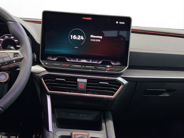 - Weiteres: Reimport, Leuchtweitenregelung automatisch, Mittelarmlehne vorn, Reifen-Reparaturset, Getriebe 7-Gang - Doppelkupplungsgetriebe DSG, Sportsitze vorn, Außenspiegel elektr. verstell-, heiz- und anklappbar mit Spiegelabsenkung und Welcome Light, Lendenwirbelstütze Sitz vorn rechts, verstellbar, Notrufsystem, LM-Felgen, Nebelscheinwerfer LED mit Abbiegelicht, Rücksitzlehnen umklappbar mit Fernentriegelung im Kofferraum, Scheinwerfer Voll-LED, USB-Schnittstelle vorn (2-fach, Typ C), Seitenairbag vorn mitte (Central Airbag), Zentralverriegelung / Startanlage Keyless Go (Start-Stop-Knopf), Isofix-Aufnahmen für Kindersitz an Beifahrersitz und Rücksitz (inkl. i-Size-Kindersitze), Lenkrad heizbar (CUPRA Supersport, Leder) mit Multifunktion und Schaltfunktion, Schadstoffarm nach Abgasnorm Euro 6e, Mild-Hybrid 110 kW (Motor 1,5 Ltr. - 110 kW eTSI), Radstand Standard, Mobile Online Dienste Cupra Connect plus, Connectivity-Box, Innenausstattung: Interieurleisten Copper, Rücksitzlehne geteilt/klappbar mit Mittelarmlehne und Durchladeeinrichtung, Sitzbezug / Polsterung: Stoff/Kunstleder schwarz (Sharp Textil), Audiosystem: Vorbereitung für spätere Freischaltung Navigationsfunktion Cupra Connect Plus, Rückfahrkamera, Heckklappe/-Deckel elektr. betätigt (öffnen + schliessen, sensorgesteuert), Schließ-/Startsystem Kessy Advanced, Edge-Paket, Airbag Fahrer-/Beifahrerseite, Kopf-Airbag-System, Gepäckraumabdeckung / Rollo, Licht- und Regensensor, Reifenkontroll-Anzeige, Seitenairbag, Dachreling schwarz, hochglänzend, Parkbremse elektrisch mit Auto-Hold-Funktion, Full Link (MirrorLink, Apple CarPlay und Android Auto), Heckleuchten Voll-LED mit dynamischem Lichtband (Infinite Light), USB-Ladeanschlüsse (2-fach, Typ C) für 2.Sitzreihe, Gepäckraumbeleuchtung (LED), Seitenscheiben ab 2.Sitzreihe und Heckscheibe dunkel getönt (Privacy Glass), Metallic-Lackierung, Ambiente-Beleuchtung LED, Ambiente-Beleuchtung Smart Ambient Light, Antriebsart: Frontantrieb, Audio-Navigationssystem mit Touchscreen Farbbildschirm 12,9, Autom. Distanzregelung (ACC / PCC) mit vorausschauender Geschw.-Regelung, Automatische Distanzregelung (ACC), Beifahrerairbag abschaltbar, Climatronic 3-Zonen, Diebstahl-Warnanlage mit Innenraumüberwachung und Abschleppschutz, Differentialsperre (Vorderachse), Einparkhilfe vorn und hinten, Einschaltautomatik für Fahrlicht, Elektron. Differentialsperre (XDS), Fahrprofilauswahl (CUPRA Drive Profile), Fensterheber elektrisch vorn und hinten mit Komfortschaltung, Fensterzierleisten schwarz, Fernlichtassistent, Gepäck-/Laderaumboden doppelt, getönte Scheiben - Privacy Glass, Handschuhfach mit LED-Beleuchtung, Innenspiegel mit Abblendautomatik, Kombiinstrument digital (virtual cockpit), Kopfstützen hinten, Ladekabel mit Schukostecker, Lendenwirbelstütze, Leseleuchten vorn LED, Licht- und Sicht-Paket, Lichtassistent (Coming Home, Leaving Home), Media-System Plus, Müdigkeitserkennung, Progressivlenkung, Radioempfang digital (DAB+), Sitzhöhenverstellung, Sitzhöhenverstellung Fahrersitz, Spurhalteassistent, Start/Stop-Anlage, Umfeldbeobachtungssystem (Front assist) mit City-Notbremsfunktion, Verkehrszeichenerkennung, Voll-LED-Paket, Wärmeschutzverglasung