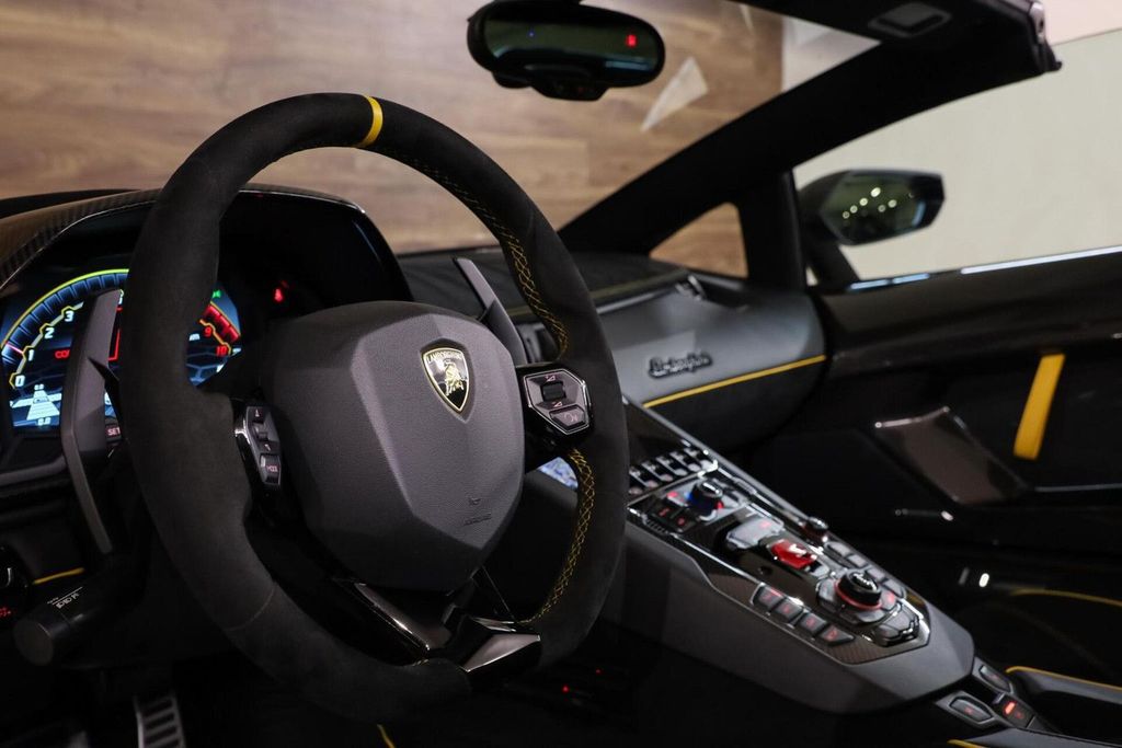 Darüber hinaus verfügt dieser SVJ über zahlreiche Sonderausstattungen wie: Vollcarbon-Interieur, Carbon-Dach, Original Carbon Novitec Umbau, Novitec Abgasanlage, Vollcarbon-Außenteile, Keramikbremsscheiben, Liftsystem an der Vorderachse, Carbon-Schalensitze mit Alcantara-Innenausstattung, gelbe Kontrastlackierung, 22-Zoll-Novitec-Leichtmetallfelgen hinten, 21-Zoll-Novitec-Leichtmetallfelgen vorne, Rückfahrkamera, Einparkhilfe hinten, Navigation, Bluetooth-Audio, Sensonum Soundsystem, Multifunktions-Alcantara-Sportlenkrad, Lenkradschaltung usw.