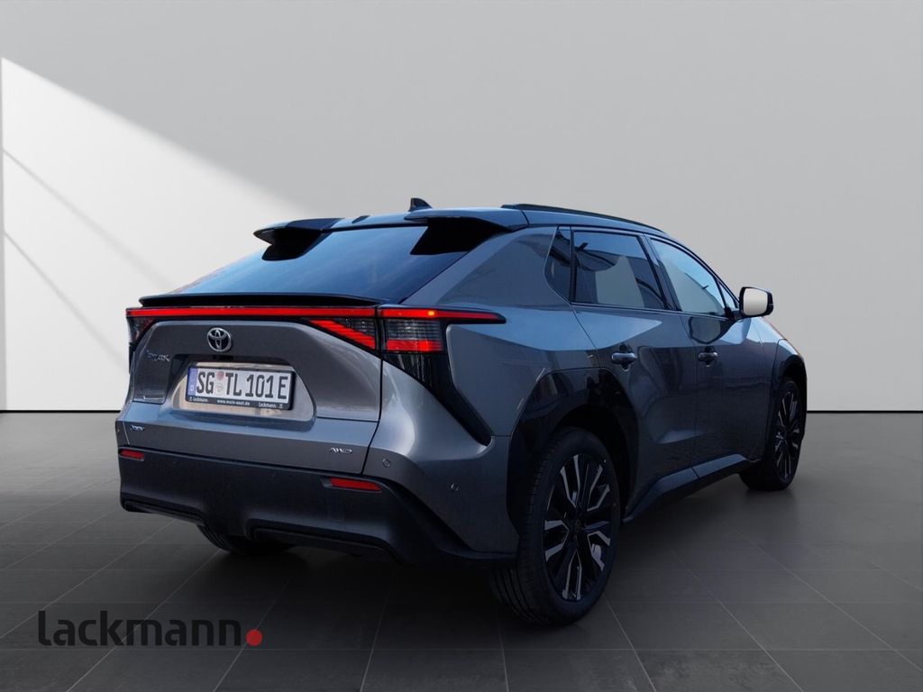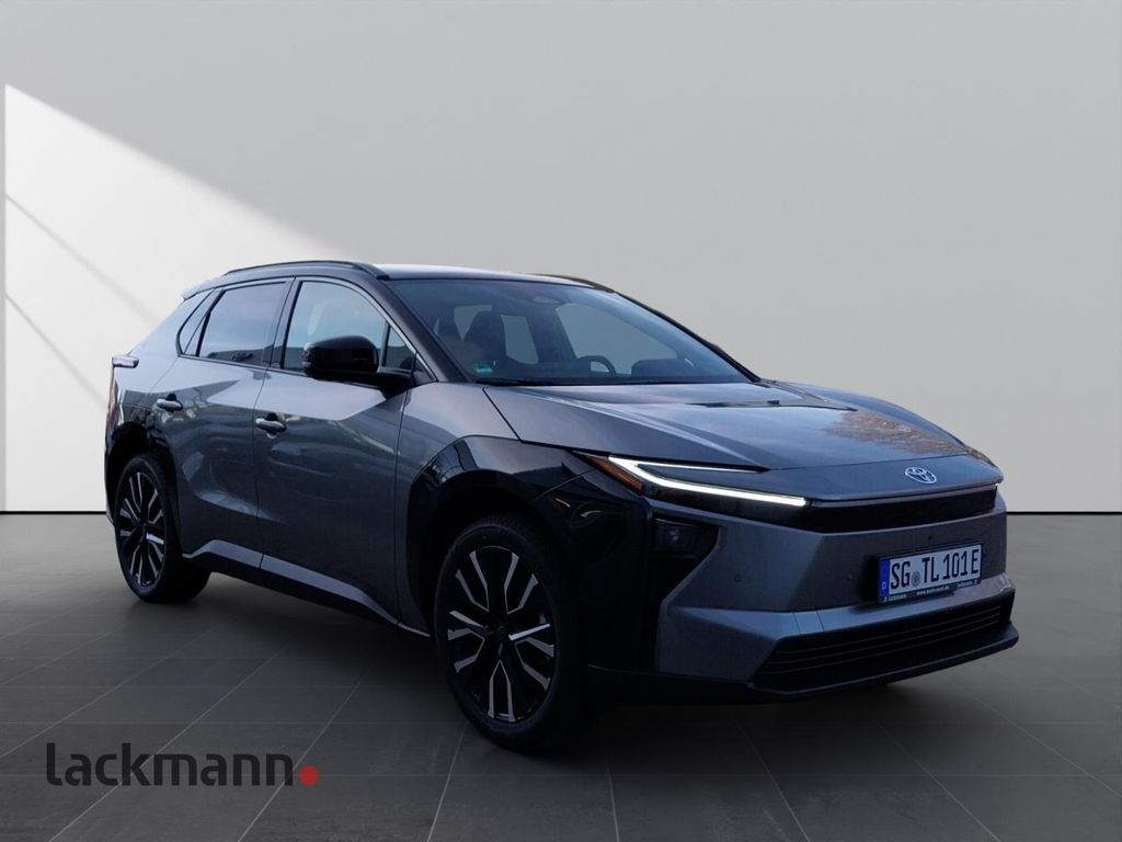 - Weiteres: Scheinwerfer-Reinigungsanlage (SRA), Reifendruck-Kontrollsystem, Antriebsart: Allradantrieb, Rückfahrkamera, Scheibenwischer mit Regensensor, Reifen-Reparaturkit, Knieairbag Fahrerseite, Dachreling, Heckleuchten LED, Frontscheibe heizbar, Verglasung grün getönt, Cloud- und Onboard-Navigationssystem, Schutzfolie Türgriffmulde, Lehnenverkleidung Rücksitzbank, HV-Batterie 73 kWh, Elektromotor 252 kW, Kamerasystem 360 Grad, Matrix-LED-Scheinwerfer (Adaptives Scheinwerferlicht), Park-Assistent Intelligent Park Assist, Sitz vorn links elektr. verstellbar (mit Memory), Toyota Safety Sense, Wärmeschutzverglasung getönt, Panorama-Glasdach, Airbag Fahrer-/Beifahrerseite, Tagfahrlicht LED, Seitenairbag vorn, Außenspiegel elektr. verstell- und heizbar, Wegfahrsperre, Kopf-Airbag-System, Lenksäule (Lenkrad) verstellbar, Rücksitz geteilt, Außenspiegel elektr. verstellbar, mit Memory, Toyota Smart Connect (Apple CarPlay und Android Auto, Cloud-Navigationssystem), Adaptiver Fernlichtassistent (Adaptive High-Beam System, AHS), aktiver Spurhalteassistent (Lenkunterstützung), Audiobedienung am Lenkrad, Auffahrwarnsystem (Forward Collision Warning, FCW), Außenspiegel elektr. anklappbar, Ausstiegswarnung (Safe Exit Assist, SEA), Autom. Begleitfunktion der Beleuchtung (Follow me home), Beifahrerairbag abschaltbar, Bergabfahrkontrolle (HDC / DAC), Berganfahrkontrolle (HAC), DAB-Tuner (Radioempfang digital), Dach in Kontrastfarbe, Diebstahl-Warnanlage, Einparkhilfe vorn und hinten, Fahrersitz elektr. verstellbar, Fensterheber elektrisch vorn und hinten, Freisprechanlage Bluetooth, Freisprechanlage mit Sprachsteuerung, Geschwindigkeits-Begrenzeranlage, Gurtwarner hinten, Heckspoiler, Induktionsladeschale für Smartphone, Innenbeleuchtung LED, Innenraum?berwachung, Innenspiegel mit Abblendautomatik, Isofix-Aufnahmen für Kindersitz, Klimaautomatik 2-Zonen, Kofferraumdeckel / Heckklappe elektr. Easy-Load (öffnen + schliessen), Kreuzungs-Assistent, Lederlenkrad, Lendenwirbelstütze elektr. verstellbar, Lenkrad heizbar, Müdigkeitserkennungs-Sensor, Multi-Funktions-Display für Navigationssystem (12,3 Zoll), Parkbremse elektrisch (EPB), Polster: Kunstleder, Pre-Collision-System (PCS), Radstand 2850 mm, Rücksitz klappbar, Scheibenwaschdüsen heizbar, Scheibenwischerenteiser vorn, Seitenairbag vorn und hinten, Sitze vorn klimatisiert, Sitzheizung hinten, Sitzheizung vorn, Sitzhöhenverstellung, Smartphone-Integration x-connect (Apple CarPlay und Android Auto), Sound-System JBL Premium (inkl. Subwoofer), Spurwechselassistent, Startanlage Smart-Key, Entry & Drive, Totwinkel-Assistent, Türverkleidung Kunstleder, Verglasung hinten abgedunkelt, Verkehrszeichenerkennung (RSA), Warnanlage für Sicherheitsgurte vorn, ZV