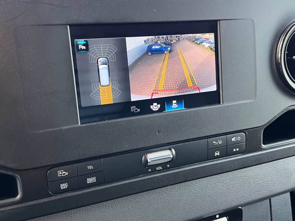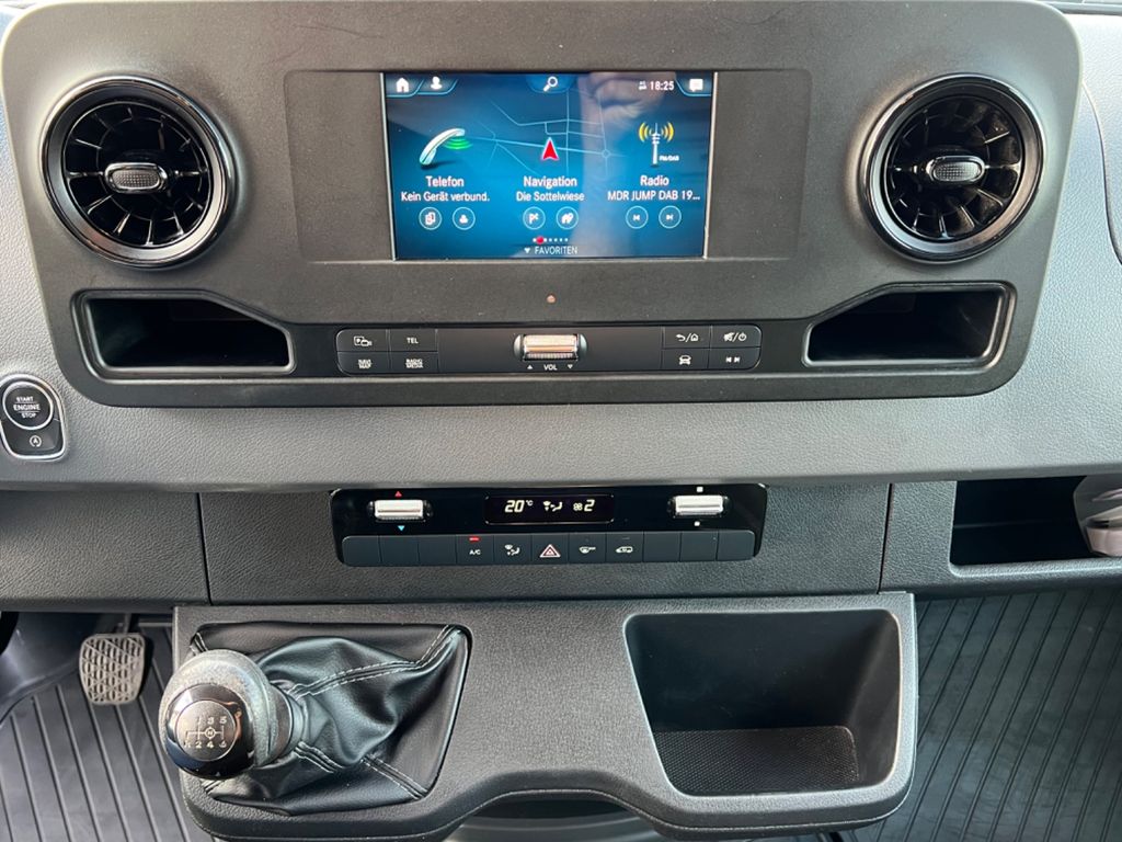Bodenbelag: Kunststoff im Lade-/Fahrgastraum, DAB-Tuner (Radioempfang digital), Einstiegsgriff an Hecksäule hinten rechts, Komfort-Fahrwerk, Leitungskanal an Heckportal, Leitungskanal an Seitenwand, Multimediasystem MBUX (Touchscreen 7"), Navigationssystem für Multimediasystem MBUX, Park-Paket mit Rückfahrkamera, Scheibenwischer mit Regensensor, Sitze im Fahrerhaus: Fahrersitz heizbar, Verkleidung im Lade-/FG-Raum: Holz hoch (bis Dach), Verzurrschienen im Laderaum - Seitenwand an Brüstungsgurt, Vlies-Batterie 92 Ah