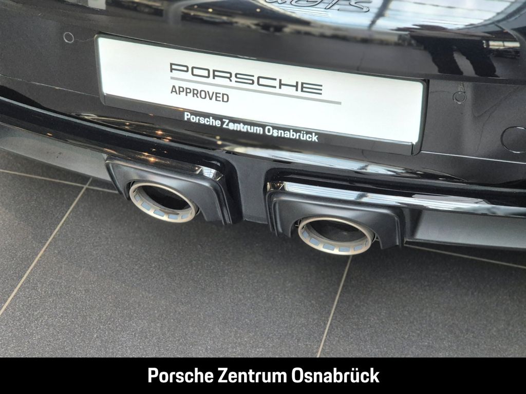 - Weiteres: (3FE) Elektrisches Schiebe-/Hubdach aus Glas, (VM3) Exterieur-Paket in Schwarz (hochglanz) i.V.m. Aerokit, (QJ4) Seitenscheibenleisten in Schwarz (hochglanz), (1N3) Servolenkung Plus, (2UH) Liftsystem Vorderachse, (0P5) Sportendrohre Titan, (1LR) Bremssättel lackiert in Schwarz (hochglanz), (0I2) 84 Liter Kraftstofftank, (Q1J) Adaptive Sportsitze Plus (18-Wege, elektrisch) mit Memory-Paket, (3UG) Hintersitzanlage, (7V8) Zifferblatt Sport Chrono Stoppuhr und digitaler Drehzahlmesser karminrot, (7M8) Türeinstiegsblenden Carbon matt, beleuchtet, (9VJ) Burmester® High-End Surround Sound-System, (8JU) HD-Matrix LED-Hauptscheinwerfer abgedunkelt, (4GP) Windschutzscheibe mit Graukeil, (VW7) Leichtbau- und Geräuschschutzverglasung inkl. Privacy-Verglasung, (QK3) Vorrüstung Porsche Dashcam, (7Y8) Spurwechselassistent