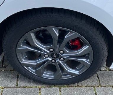 Airbag Beifahrerseite abschaltbar, Antischlupfregelung (ASR), Audio-Navigationssystem Ford SD (mit Ford SYNC 4 und Touchscreen-Farbdisplay), Außenspiegel elektr. anklappbar, Außenspiegel elektr. verstell- und heizbar, Blinkleuchte in Außenspiegel integriert, Body-Styling-Paket, Bord-/Verbrauchscomputer, Dachhimmel Stoff, dunkel, Dachreling schwarz, Dimmer Instrumentenbeleuchtung, Doppelendrohr Auspuffanlage, Elektr. Bremskraftverteilung (EBD), Fahrassistenz-System: Berganfahr-Assistent (Hill-Holder), Fahrassistenz-System: Notbrems-Assistent, Fahrassistenz-System: Post-Collision-System, Fahrassistenz-System: Pre-Collision-System, Fahrassistenz-System: Spurhalteassistent, Farbdisplay (8 Zoll), Farbdisplay für Bordcomputer, Fensterheber elektrisch vorn + hinten mit Komfortschließung, Fußmatten Teppich, Fußmatten Velours - vorn, Gepäckraumabdeckung / Rollo, Getriebe 6-Gang - Typ: 6MX65, Innenraumfilter: Staub- und Pollenfilter, Innenspiegel mit Abblendautomatik, Intelligent Protection System (IPS), Intelligenter Geschwindigkeits-Begrenzer, Isofix-Aufnahmen für Kindersitz, Karosserie: 5-türig, Klimaautomatik 2-Zonen, Kopfstützen hinten mechan. verstellbar (3 Stück), Kopfstützen vorn 4-fach verstellbar, Lenkrad (Sport/Leder, ST), Lenksäule (Lenkrad) höhen-/längsverstellbar, LM-Felgen, Mild-Hybrid 92 kW (Motor 1,0 Ltr. - 92 kW EcoBoost), Mittelkonsole Premium, Modellpflege, My Key (2. Fahrzeugschlüssel programmierbar), Nebelscheinwerfer LED, Parkbremse elektrisch mit Auto-Hold-Funktion, Parkpilotsystem vorn und hinten, Reifen-Reparaturkit, Reifendruck-Kontrollsystem, Rücksitzlehne geteilt/klappbar (60:40), Schadstoffarm nach Abgasnorm Euro 6e, Schalt-/Wählhebelgriff Aluminium, Schalt-/Wählhebelgriff Leder, Schaltpunktanzeige, Scheinwerfer LED, Scheinwerfer mit abgedunkelten Hintergrund, Scheinwerfer mit Ausschaltverzögerung, Scheinwerfer-Assistent mit Tag-/Nachtsensor, Sitz vorn links höhenverstellbar, Sonnenblende links mit Spiegel, Sonnenblende rechts mit Spiegel, Sport-Fahrwerk, Start/Stop-Anlage, Steckdose (12V-Anschluß) im Koffer-/Laderaum, Verglasung getönt, Warnanlage für Sicherheitsgurte hinten, Warnanlage für Sicherheitsgurte vorn.