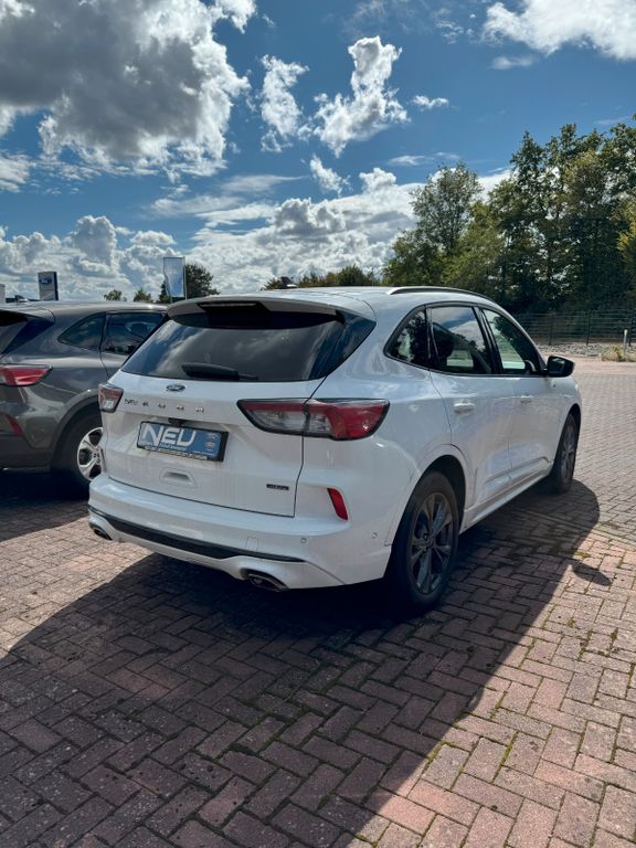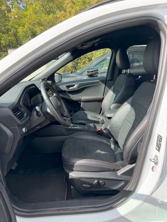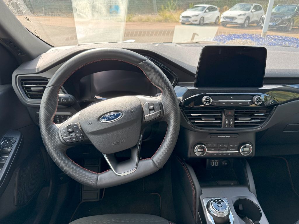 Akustischer Fußgängerschutz (Außensound, AVAS), Ambiente-Beleuchtung vorn (LED), Antischlupfregelung (ASR), Audio-Navigationssystem Ford mit AppLink, Außenspiegel elektr. anklappbar, Außenspiegel elektr. verstell- und heizbar, Body-Styling-Paket, Bordcomputer, Brillenfach in Dachhimmel / Dachkonsole integriert, Dachhimmel Stoff, dunkel, Dachreling schwarz, Dachspoiler Wagenfarbe, Doppelendrohr Auspuffanlage, Eco-Anzeige für verbrauchsoptimiertes Fahren (EcoCoach), Elektromotor 97 kW (Hybridantrieb), Fahrassistenz-System: Notbrems-Assistent, Fahrassistenz-System: Post-Collision-System, Fahrassistenz-System: Pre-Collision-System, Fahrassistenz-System: Spurhalteassistent, Fensterheber elektrisch vorn + hinten mit Komfortschließung, FordPass Connect inkl. eCall, Fußmatten ST-Design, Gepäckraumabdeckung / Rollo, Getriebe Automatik - ECVT, Heckleuchten LED, Induktionsladeschale für mobile Endgeräte, Innenspiegel mit Abblendautomatik, Intelligent Protection System (IPS), Isofix-Aufnahmen für Kindersitz, Karosserie: 5-türig, Kindersicherung elektrisch, Klimaautomatik 2-Zonen, Kofferraumdeckel / Heckklappe elektr. betätigt (Öffnung, sensorgesteuert), Kombiinstrument Digitalanzeige 12,3 Zoll, Kopfstützen vorn 4-fach verstellbar, Lenkrad (Sport/Leder, ST), Lenksäule (Lenkrad) höhen-/längsverstellbar, LM-Felgen, Mittelarmlehne hinten, Motor 2,5 Ltr. - 112 kW (System: 165 kW) Hybrid, My Key (2. Fahrzeugschlüssel programmierbar), Parkbremse elektrisch mit Auto-Hold-Funktion, Parkpilotsystem vorn und hinten, Radstand 2710 mm, Reifen-Reparaturkit, Reifendruck-Kontrollsystem, Rücksitzlehne geteilt, Rücksitzlehne klappbar, Schadstoffarm nach Abgasnorm Euro 6d, Schalt-/Wählhebelgriff Aluminium, Scheibenrahmen schwarz, Scheinwerfer LED, Scheinwerfer mit Ausschaltverzögerung, Scheinwerfer-Assistent mit Tag-/Nachtsensor, Sitz vorn links elektr. verstellbar (10-fach), Sitz vorn rechts verstellbar (8-fach), Sitzbezug / Polsterung: Kunstleder / Stoff Wildleder Optik, Sitzheizung vorn, Sonnenblende links mit Spiegel (beleuchtet), Sonnenblende rechts mit Spiegel (beleuchtet), Spezialausführung 2, Sport-Fahrwerk, Sportsitze, Verglasung hinten abgedunkelt (Privacy Glass)