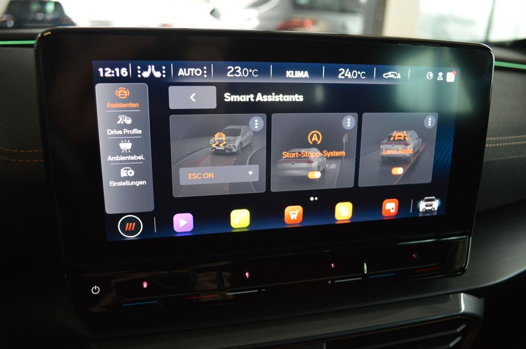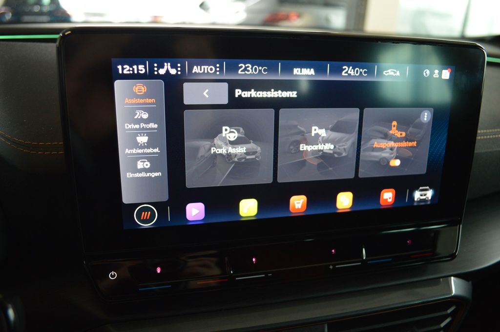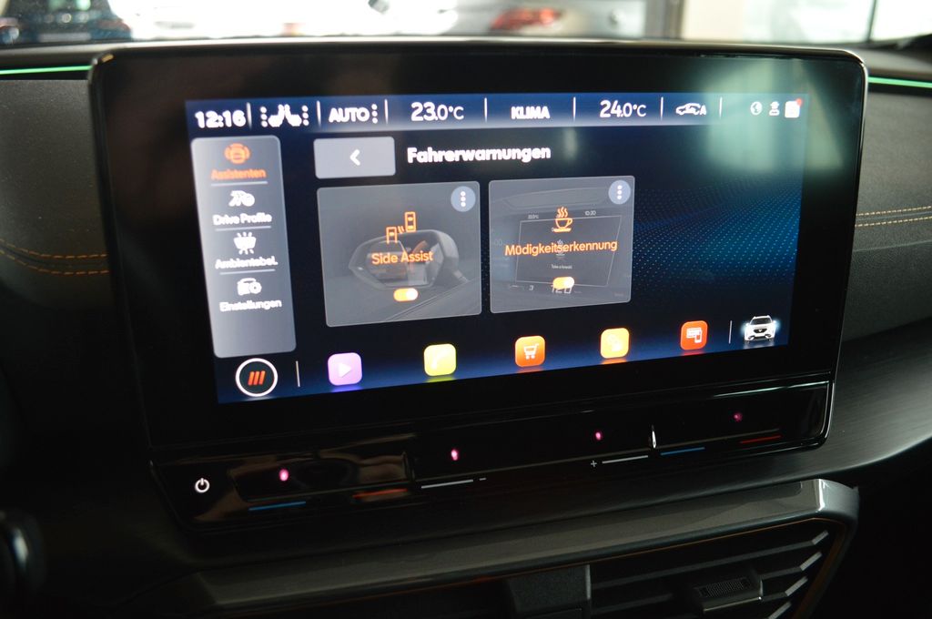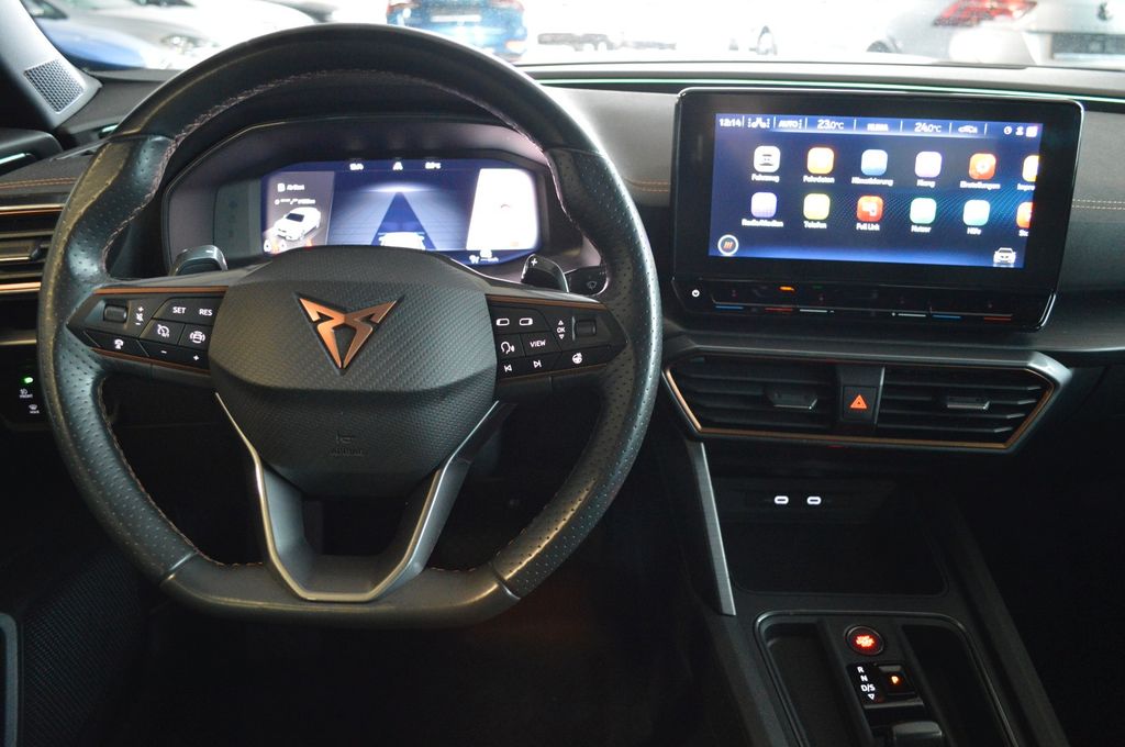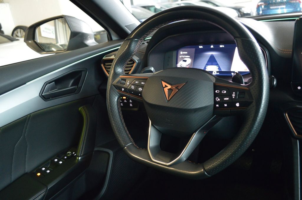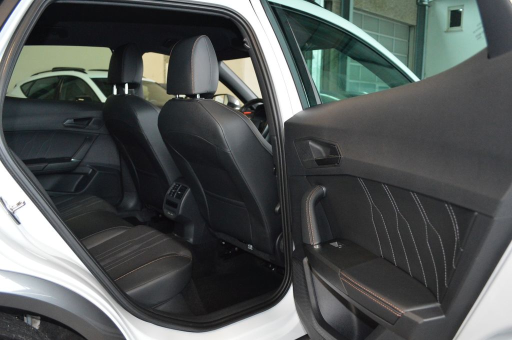 7 Lautsprecher, Airbag Beifahrerseite abschaltbar, Airbag Fahrer-/Beifahrerseite, Antriebs-Schlupfregelung (ASR), Außenspiegel elektr. verstell-, heiz- und anklappbar mit Spiegelabsenkung und Welcome Light, Blinkleuchten LED in Außenspiegel integriert, Bluetooth-Schnittstelle mit Freisprecheinrichtung integriert, Dachreling schwarz, hochglänzend, Doppeltonhorn, Einstiegsleisten (Aluminium) vorn, beleuchtet, Elektron. Differentialsperre (XDS), Fahrassistenz-System: Fahrprofilauswahl (CUPRA Drive Profile), Fensterheber elektrisch vorn + hinten mit Komfortschaltung, Fensterzierleisten schwarz hochglänzend, Gepäckraumabdeckung / Rollo, Heckleuchten Voll-LED mit dynamischem Lichtband (Infinite Light), Isofix-Aufnahmen für Kindersitz an Rücksitz, Karosserie: 5-türig, Klimaanlage Climatronic 3-Zonen, Kombiinstrument digital (virtual cockpit), Kopf-Airbag-System, Laderaumboden variabel und herausnehmbar, Lendenwirbelstütze Sitz vorn links, verstellbar, Lendenwirbelstütze Sitz vorn rechts, verstellbar, Licht- und Sicht-Paket, Media-System Plus, Mittelarmlehne hinten, Mittelkonsole vorn mit Mittelarmlehne, Becherhalter, Ablagebox und Luftausströmer hinten, Motor 1,5 Ltr. - 110 kW 16V TSI ACT, Notrufsystem, Otto-Partikelfilter (OPF), Parkbremse elektrisch, Radioempfang digital (DAB+), Radstand 2679 mm, Reifen-Reparaturset, Rücksitzlehne geteilt/klappbar (1/3-2/3), Rücksitzlehnen umklappbar mit Fernentriegelung im Kofferraum, Schadstoffarm nach Abgasnorm Euro 6d, Seitenairbag, Seitenairbag vorn mitte (Central Airbag), Seitenscheiben hinten und Heckscheibe abgedunkelt, Sitz vorn links höhenverstellbar, Sitz vorn rechts höhenverstellbar, Sitzbezug / Polsterung: Stoff, Sonnenblende links mit Spiegel (beleuchtet), Sonnenblende rechts mit Spiegel (beleuchtet), Sportsitze vorn, Start/Stop-Anlage, Steckdose (12V-Anschluß) vorn, Steckdose 230V im Gepäckraum, USB-Ladeanschlüsse (2-fach, Typ C) für 2.Sitzreihe, USB-Schnittstelle vorn (2-fach, Typ C), Verzurrösen Koffer-/Laderaum, Warnanlage für Sicherheitsgurt-System, Wärmeschutzverglasung