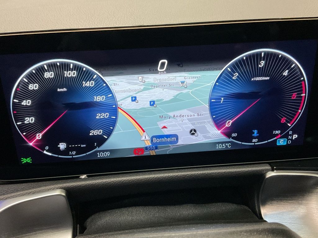 La macchina ha gli interni in pelle marrone, volante multifunzionale beige, display touch con radio, bluetooth, telecamera 360, sensori di parcheggio, sedili riscaldabili, tetto panoramico, luci ambiente,fari full led