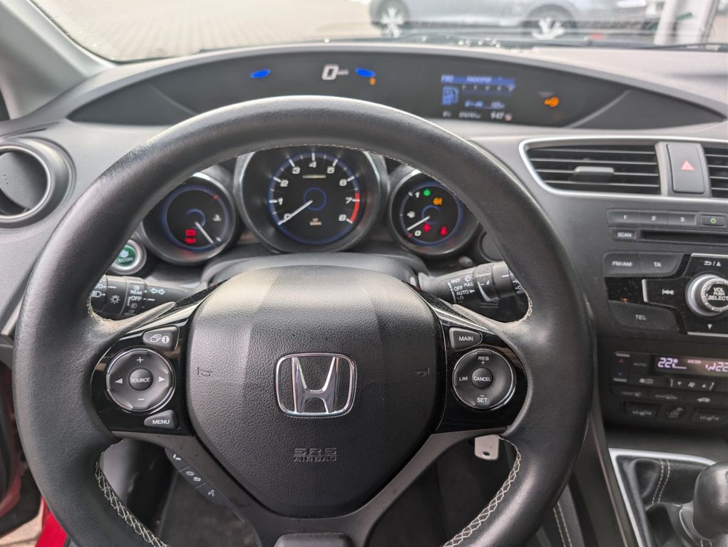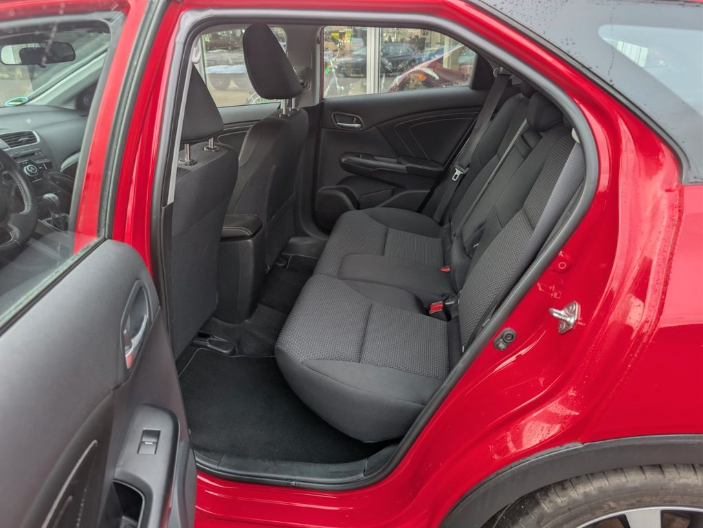 Adaptives Fahrwerk, Airbag Beifahrerseite abschaltbar, Airbag Fahrer-/Beifahrerseite, Ambiente-Beleuchtung, Anzeige für Reifendruck im Display, Audiosystem: Radio mit CD-Player (MP3-fähig), Autom. Begleitfunktion der Beleuchtung (Coming Home, Leaving Home), Automatische Fahrlichtschaltung / Lichtsensor, Außenspiegel elektr. anklappbar, Außenspiegel elektr. verstell- und heizbar, Blinkleuchte in Außenspiegel integriert, Colorverglasung, Dachreling lackiert, Elektr. Bremskraftverteilung, Fahrassistenz-System: Berganfahrhilfe, Fahrassistenz-System: City-Notbremsfunktion (CTBA), Fahrassistenz-System: Eco Assist (Econ Modus), Fahrassistenz-System: Notbrems-Assistent, Fensterheber elektrisch vorn + hinten, Freisprecheinrichtung (Bluetooth) mit Sprachsteuerung, Gepäckraum-Abtrennung (Netz), Gepäckraumabdeckung / Rollo, Gurtstraffer, Handschuhfach beleuchtet, Heckscheibenwischer, Hochtöner hinten, Hochtöner vorn, Innenspiegel mit Abblendautomatik, Isofix-Aufnahmen für Kindersitz, Karosserie: 5-türig, Klimaautomatik 2-Zonen, Kopf-Airbag-System, Ladekantenschutz, Laderaumboden verstellbar, Lautsprecher hinten, Lautsprecher vorn, Lenksäule (Lenkrad) höhen-/längsverstellbar, Leseleuchten vorn, LM-Felgen, Mittelarmlehne hinten, Modellpflege, Motor 1,8 Ltr. - 104 kW i-VTEC KAT, Multi-Info-Display (i-MID), Multifunktion für Lenkrad, Multimediabuchse AUX-IN, Reifen-Reparaturset, Rückfahrkamera, Rücksitz geteilt / klappbar, Rücksitze im Fahrzeugboden versenkbar, Schadstoffarm nach Abgasnorm Euro 6, Schalt-/Wählhebelgriff Leder, Seitenairbag vorn, Sitz vorn links höhenverstellbar, Sitzbezug / Polsterung: Stoff, Sitzheizung vorn, Sonnenblenden mit Spiegel (beleuchtet), Sound-System, Sport-Pedalerie, Start/Stop-Anlage, Stoßfänger Wagenfarbe, Türgriffe außen Wagenfarbe, USB-Schnittstelle, Verglasung hinten abgedunkelt (Privacy Glass)