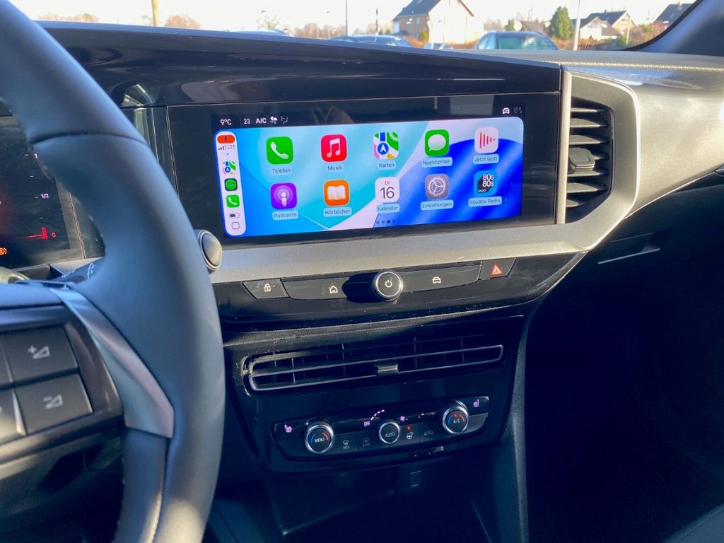 - Weiteres: Navigation via AppleCarPlay oder Android Auto möglich, Scheinwerfer LED, Heckleuchten LED, Reifen-Reparaturkit, Dachspoiler, Elektron. Stabilitäts-Programm Plus (ESP), Außenspiegel elektr. verstell- und heizbar, elektr. anklappbar, Scheibenwischer mit Regensensor, Wärmeschutzverglasung hinten abgedunkelt (Solar-Protect), Lenkrad heizbar, Otto-Partikelfilter (OPF), Smartphone Schnittstelle (Apple CarPlay & Android Auto), LM-Felgen, Schadstoffarm nach Abgasnorm Euro 6e, Black-Paket, Parkpilotsystem hinten, Lenkrad (Leder, vegan) mit Multifunktion, Metallic-/Mineraleffekt-Lackierung, Sonnenblenden mit Spiegel (beleuchtet), Anti-Blockier-System (ABS), Tagfahrlicht LED, Seitenairbag vorn, Kopf-Airbag-System, Einschaltautomatik für Fahrlicht mit Tunnelerkennung, Getriebe Automatik - mit Start-/Stop (8-Stufen), Rückfahrkamera mit 180° Umgebungsansicht, Antriebsart: Frontantrieb, Audiosystem Multimedia, Bluetooth Audio-Streaming, DAB-Tuner (Radioempfang digital), Dach Kontrast-Lackierung, Dachhimmel schwarz, Fernlichtassistent, Freisprechanlage Bluetooth, Gepäck-/Laderaumboden doppelt, Innenspiegel mit Abblendautomatik, Klimaautomatik, Komfort-Paket, Motor 1,2 Ltr. - 96 kW, MP3-Schnittstelle für Mobiltelefon/Handy, Müdigkeitserkennungs-Sensor, Nebelscheinwerfer LED, Opel Connect, Polster: Stoff / Ledernachbildung, Sicht-Paket, Sitzheizung vorn, Verkehrszeichenerkennung, Wärmeschutzverglasung, Winter-Paket