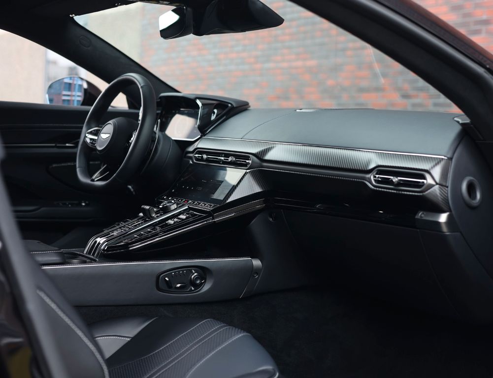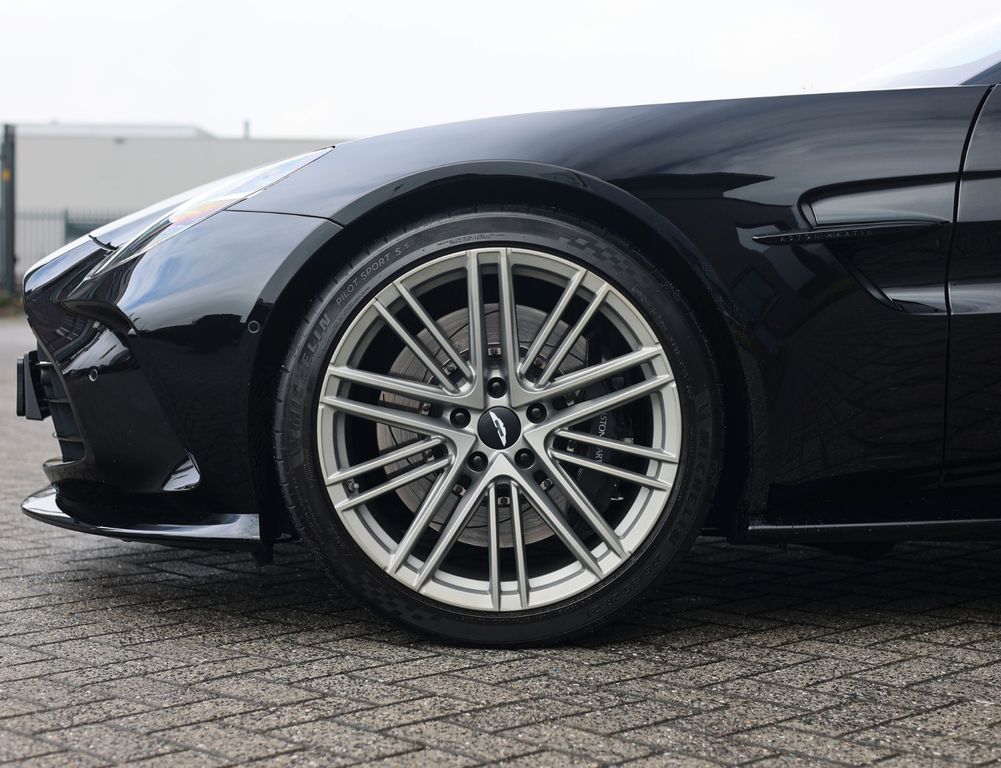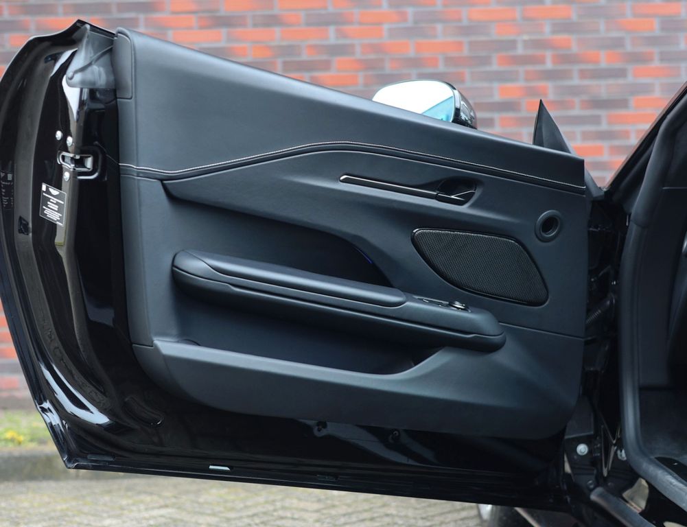 With its all-black exterior, this Aston Martin exudes a powerful presence. In addition to the Onyx Black paint, both the Lower and Upper Body Packages are finished in glossy black, while the brake calipers and tail lights are tinted dark. Simply stunning to behold!