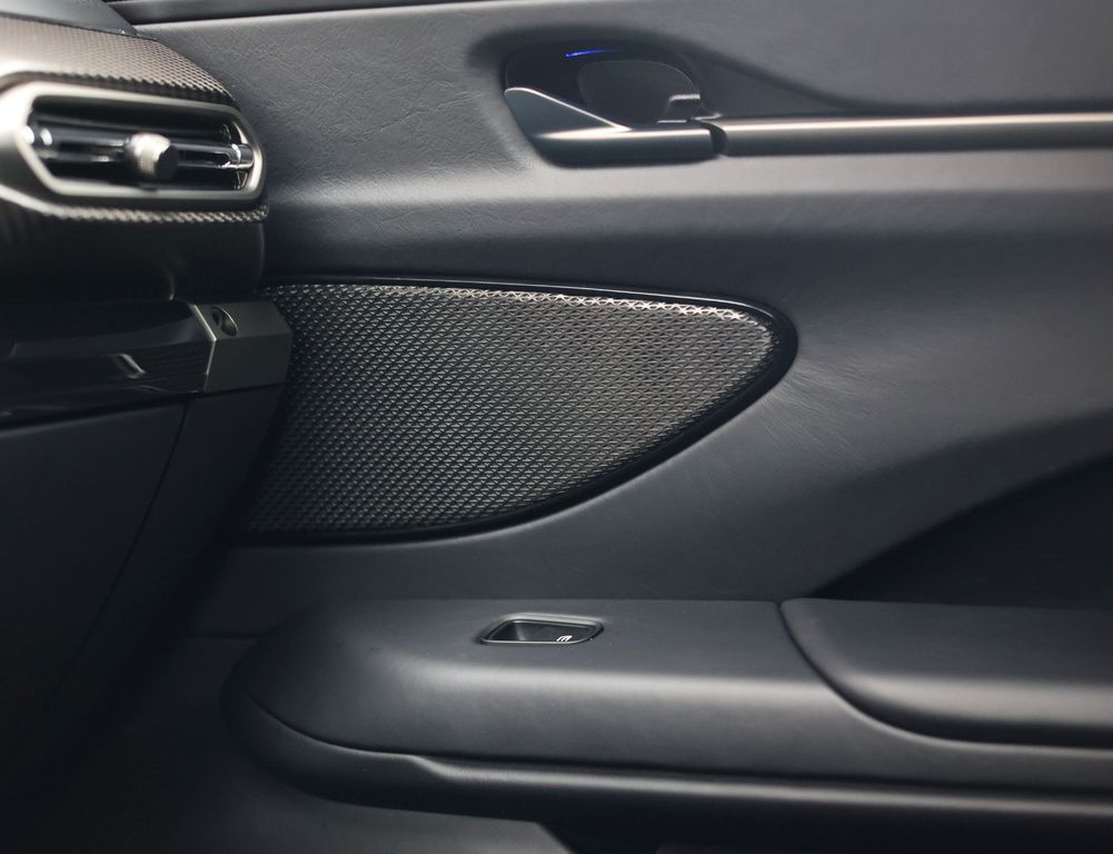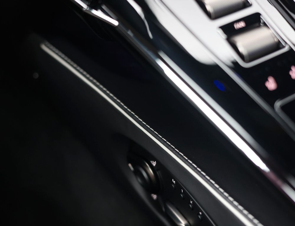 The interior is equally black, but with subtly contrasting Glacier White stitching, giving the cabin an elegant touch. Absolutely beautiful!