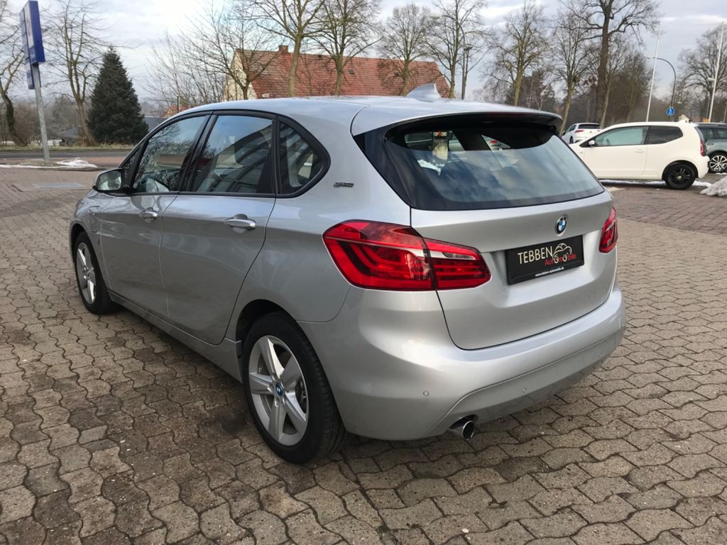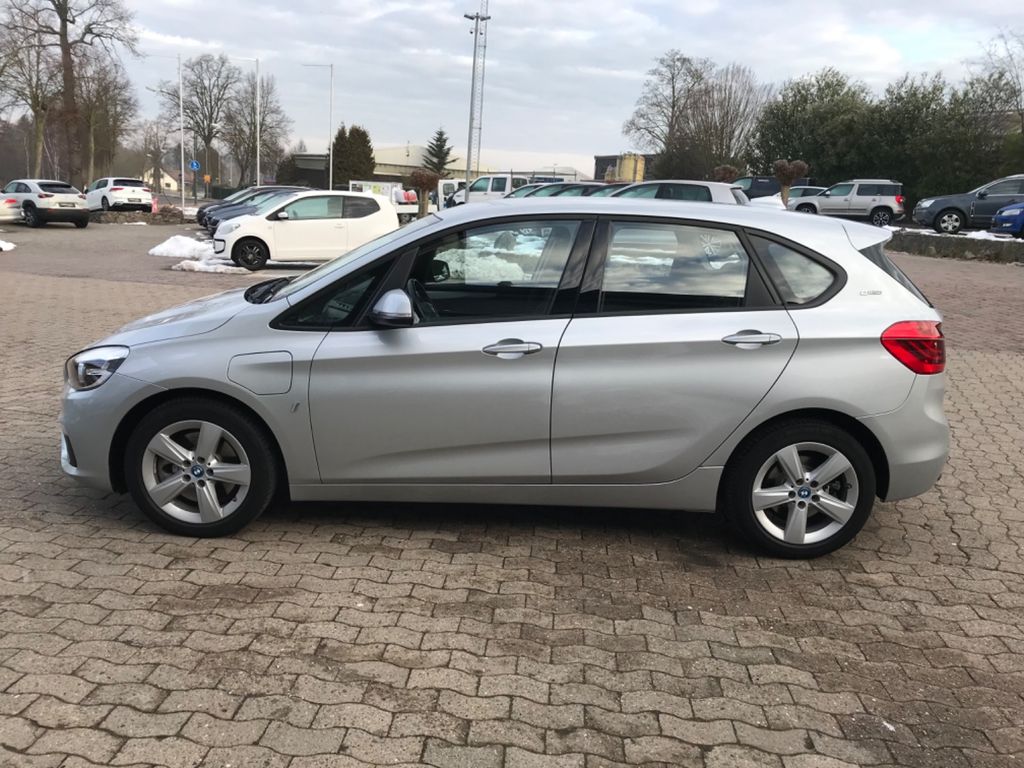 Ablage-Paket, Advantage, Airbag Beifahrerseite, Airbag Beifahrerseite abschaltbar, Airbag Fahrer-/Beifahrerseite, Airbag Fahrerseite, Auspuffanlage (1-Rohr-Anlage) mit Blende, Außenspiegel elektr. verstellbar, Außenspiegel Wagenfarbe, Bordcomputer, Bremsassistent, Dynamische Bremsleuchte, Dynamische Tractions Control (DTC), Elektromotor 65 kW (Hybridantrieb), Fahrassistenz-System: Auffahrwarnsystem mit Bremsfunktion, Fahrassistenz-System: Aufmerksamkeits-Assistent, Fahrassistenz-System: Fahrerlebnisschalter, Fahrassistenz-System: Performance Control, Farbmonitor (6,5 Zoll), Freisprecheinrichtung Bluetooth mit USB-/Audio-Schnittstelle, Fußmatten Velours, Getränkehalter vorn und hinten, Heckklappenbetätigung automatisch, Heckleuchten LED, Hybrid 165 kW (Motor 1,5 Ltr. - 100 kW), Innenausstattung: Interieurleisten Oxid-Silber, dunkel matt, mit Akzentleiste, Isofix-Aufnahmen für Kindersitz an Rücksitz, Karosserie: 5-türig, Klimaautomatik 2-Zonen mit autom. Umluft-Control, Kopf-Airbag-System hinten, Kopf-Airbag-System vorn, Lenkrad (Sport/Leder), Lenksäule (Lenkrad) mechan. verstellbar, Mittelarmlehne hinten, Multifunktion für Lenkrad, Park-Distance-Control (PDC), Parkbremse elektrisch, Personalisierungssystem (Personal Profile), Reifendruck-Kontrollsystem, Rücksitzlehne geteilt/klappbar (40:20:40), Schadstoffarm nach Abgasnorm Euro 6, Schalt-/Wählhebelgriff Leder, Schaltpunktanzeige, Scheibenwaschdüsen und Außenspiegel beheizt, Seitenairbag hinten, Seitenairbag vorn, Service-System: ConnectedDrive Services, Service-System: eDrive Services, Service-System: Intelligenter Notruf inkl. TeleServices, Sitze hinten mechanisch verstellbar, Sitze vorn mechanisch verstellbar, Start-Stop-Knopf, Start/Stop-Anlage (Funktion), Variable Sportlenkung, Warndreieck, Wärmeschutzverglasung getönt