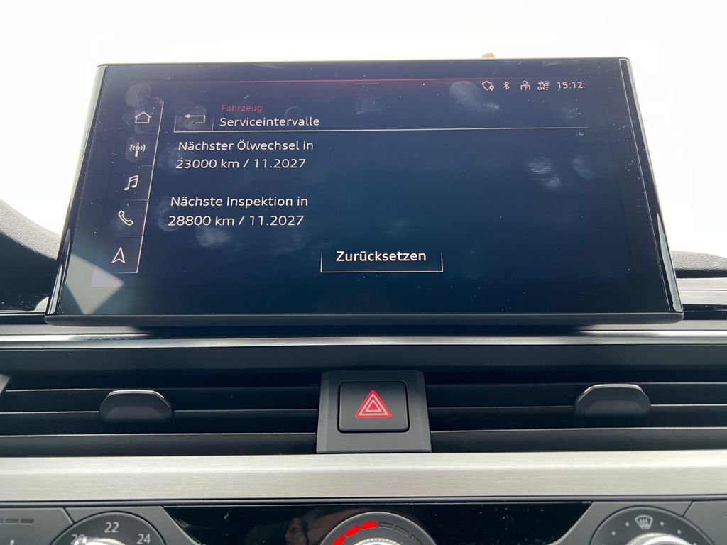 - Business-Paket: 8 Lautsprecher, Fahrer-Informations-System (FIS) mit Farbdisplay, Radioempfang digital (DAB), Universal-Schnittstelle Bluetooth, Audi music interface, Sitzheizung vorn, Außenspiegel elektr. verstell-, heiz- und anklappbar, mit Abblendautomatik und Bordsteinautomatik, Innenspiegel mit Abblendautomatik, Audi connect (Internetbasierende Dienste), Audi Smartphone Interface, Bluetooth-Freisprecheinrichtung mit Audi Phone Box light, Multi-Media-Interface MMI Navigation Plus mit MMI Touch, Lenkrad (Leder - 3-Speichen) mit Multifunktion plus und Schaltfunktion, USB-Schnittstelle für Fondpassagiere, Komfort-Paket Spiegel, Infotainment-Paket, Navigations-Paket