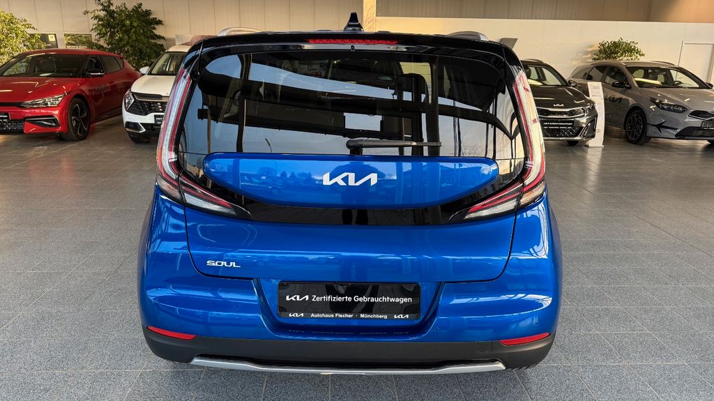 Adaptive Geschwindigkeits-Regelanlage mit Stop&Go-Funktion, Airbag Beifahrerseite abschaltbar, Airbag Fahrer-/Beifahrerseite, Aktives Bremslicht (ESS), Akustischer Umfeldschutz (virtueller Motorsound), Ambiente-Beleuchtung, Anzeigeinstrumente Supervision mit LCD Display, Audio-Navigationssystem KIA (10,25"), Ausstattungs-Paket: Technologie-Paket, Automatisches Antibeschlag-System, Außenspiegel elektr. anklappbar, Außenspiegel elektr. verstell- und heizbar, beide, Bi-LED-Scheinwerfer, Blinkleuchte in Außenspiegel integriert, Bordcomputer, Bremsassistent, DAB-Tuner (Radioempfang digital), Dachreling, Dachreling silber, Eco-Paket, Einparkhilfe hinten, Einschaltautomatik für Fahrlicht, Elektromotor 150 kW (cont. 29 kW), Exterieurumfänge Hochglanz lackiert, Fahrassistenz-System: aktiver Spurhalteassistent (LKAS, Lane Keep Assist System), Fahrassistenz-System: Autobahnassistent (Highway Driving Assist, HDA), Fahrassistenz-System: Berganfahr-Assistent, Fahrassistenz-System: Fahrprofilauswahl (Drive Mode), Fahrassistenz-System: Fernlichtassistent, Fahrassistenz-System: Frontkollisionswarnung mit Abbiege-Assistent / Querverkehrs-Assistent (FCA-JX), Fahrassistenz-System: Frontkollisionswarnung mit Fußgängererkennung, Fahrassistenz-System: Müdigkeitserkennungs-Sensor (Driver Attention Warning, DAW), Fahrassistenz-System: Sicherheitssystem mit automatischem Notruf (ERA GLONASS / eCall), Fahrassistenz-System: Spurfolgeassistent (Lane Following Assist, LFA), Fahrassistenz-System: Stauassistent, Fahrassistenz-System: Verkehrszeichenerkennung, erweitert (Geschwindigkeits-Regel-/Begrenzeranlage), Fensterheber elektr. mit Einklemmschutz vorn, Fensterheber elektrisch hinten, Freisprecheinrichtung (Bluetooth) mit Sprachsteuerung, Frontscheibe Solar-Reflect, Frontschürze Wagenfarbe, Fußmatten, Gegenlenkunterstützung (Vehicle Stability Management, VSM), Geschwindigkeits-Begrenzeranlage, Getriebe für Elektrofahrzeug, Gurtstraffer mit Kraftbegrenzer, Head-up-Display (Frontsichtanzeige), Heckleuchten LED, Heckscheibe heizbar, Heckscheibenwischer, Innenspiegel mit Abblendautomatik, Isofix-Aufnahmen für Kindersitz, Karosserie: 5-türig, Klimaautomatik, Kopf-Airbag-System vorn und hinten, Kopfstützen hinten verstellbar, Kopfstützen vorn neigungsverstellbar, Kühlergrill mit Chromrahmen, Ladekabel mit Typ 2-Stecker (Mennekes-Stecker), Laderaumabdeckung, Laderaumboden herausnehmbar, Ladevorrichtung On-Board-Lader (3-Phasen), Lenkrad heizbar, Lenkrad mit Multifunktion, Lenkrad mit Schaltwippen, Lenksäule (Lenkrad) höhen-/längsverstellbar, LM-Felgen, Luftausströmer im Fond mitte, Mobile Online Dienste UVO Connect / Kia Connect, Modellpflege, Nebelscheinwerfer LED, Parkbremse elektrisch, Reifen-Reparaturset, Reifendruck-Kontrollsystem, Rückfahrkamera, Rücksitzlehne geteilt/klappbar, Seitenairbag, Sitz vorn links höhenverstellbar, Sitzbezug / Polsterung: Stoff, Sitzheizung vorn, Smartphone Schnittstelle (Apple CarPlay & Android Auto), Sonnenblenden mit Spiegel (beleuchtet), Sound-System Harman-Kardon, Steckdose (12V-Anschluß) im Koffer-/Laderaum, Steckdose (12V-Anschluß) in Mittelkonsole, Türgriffe außen Wagenfarbe, Türgriffe innen Chrom-Optik, USB-Anschluss Mittelkonsole, Verglasung hinten abgedunkelt (Privacy Glass), Warnanlage für Sicherheitsgurte hinten, Warnanlage für Sicherheitsgurte, Fahrer-/Beifahrerseite, Wärmeschutzverglasung, Zusatzbremsleuchte LED