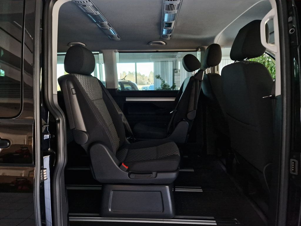 Armlehnen für beide Sitze im Fahrerhaus; 2 Drehsitze mit Armlehnen, im Schienensystem verschiebbar, in der 2. Sitzreihe; Komfortsitz links, mit Lendenwirbelstütze, in der 1.Sitzreihe (nicht drehbar); Komfortsitz rechts, mit Lendenwirbelstütze, in der 1.Sitzreihe (nicht drehbar); Lendenwirbelstützen für linken und rechten Einzelsitz in der 1.Sitzreihe (beide manuell einstellbar); 3er-Sitzbank mit Liegefunktion und Staufach, verschiebbar, in der 3.Sitzreihe; Höheneinstellung für linken und rechtenEinzelsitz im Fahrerhaus; Whiplash-Kopfstützen, vorn höhen-,hintenhöhen- und neigungsverstellbar (bei Kombi und Caravelle TL höhenverstellbar)