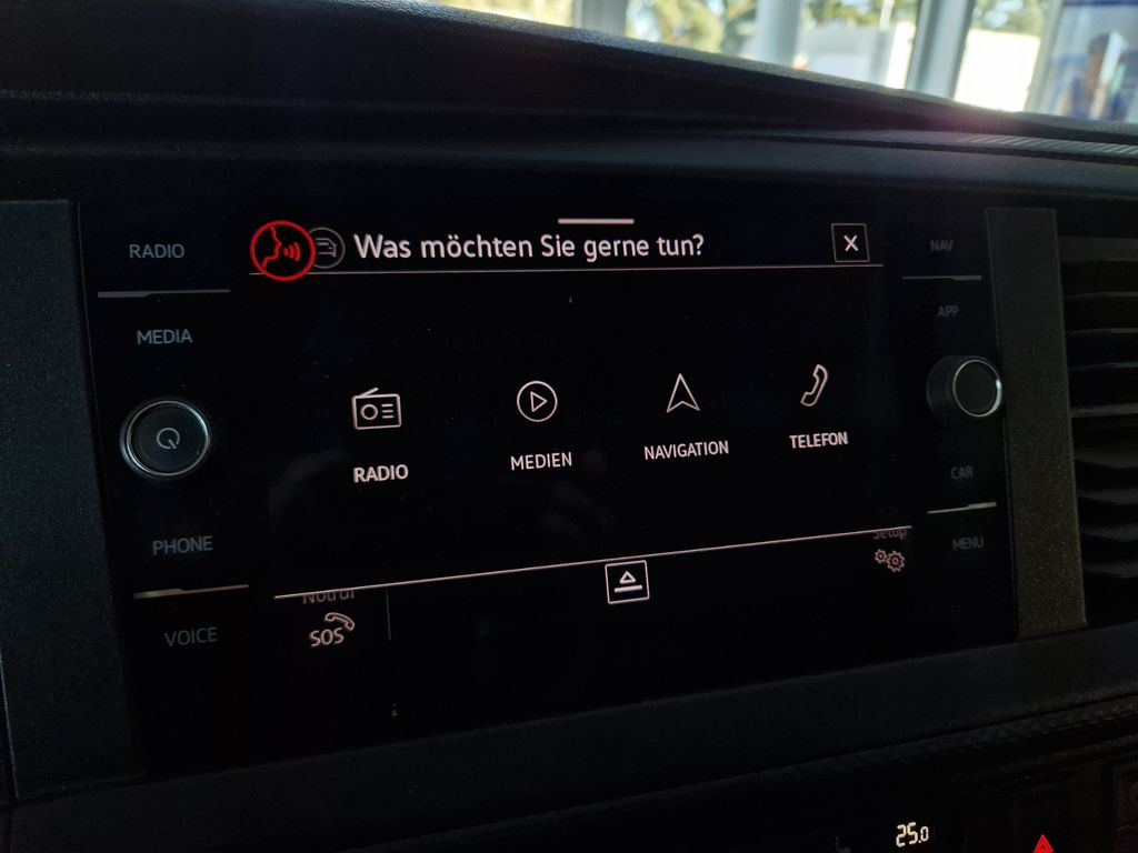 Navigationssystem "Discover Media" inklusive "Streaming & Internet"; Multifunktionsanzeige "Plus" mit schwarz-weiß Display und Müdigkeitserkennung; Navigationssystem "Discover Media" mit 20,3 cm (8 Zoll) Touch-Farbdisplay inklusive "Streaming und Internet"; Mobiltelefon-Schnittstelle; 2 USB-Schnittstellen (Typ C) in der Armaturentafel; Sprachbedienung; Digitaler Radioempfang (DAB+); Wired & Wireless App-Connect; Multifunktionsanzeige "Plus" mit schwarz-weiß Display; 6 Lautsprecher: 2 Hochtöner, 2 Tieftöner, 2 Breitbandlautsprecher; Vorbereitet für "We Connect" und "We Connect Plus"
