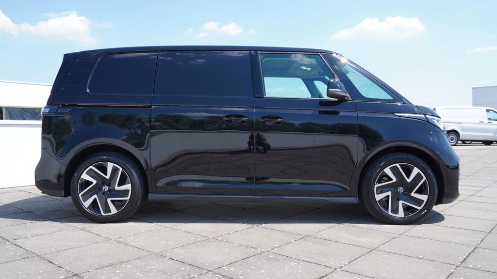 Sonderausstattung:Anhängerkupplung klappbar (elektr. Entriegelung), Ausstattungs-Paket: Alles-im-Blick inkl. Rückfahrkamera, Ausstattungs-Paket: Alles-im-Griff, Fahrassistenz-Paket, Klimaautomatik Climatronic (2-Zonen, Standklimatisierung), Lackierung: Perleffekt-Lackierung, Ladekabel mit Schukostecker (10 A, Mode 2), Ladekabel mit Typ 2-Stecker (32 A, Mode 3), Laderaumtrennwand hoch mit Fenster feststehend und Innenspiegel, LM-Felgen vorn/hinten: 8x20 / 10x20 (Solna, schwarz glanzgedreht), Mittelkonsole vorn variabel (ID.Buzz Box), Mobile Online Dienste App-Connect inkl. App-Connect Wireless (Apple CarPlay, Android Auto), Mobiltelefon Schnittstelle Comfort mit kabelloser Ladefunktion, Navigationsfunktion Discover Pro, Sitze im Fahrerhaus: Beifahrereinzelsitz, Sitze im Fahrerhaus: Fahrer- und Beifahrersitz heizbar, Sitze im Fahrerhaus: Fahrer- und Beifahrersitz mit Armlehnen beidseitig, Steckdose 230V im Fahrerhaus, Stoßfänger in Wagenfarbe, Umfeldleuchte in Heckklappe