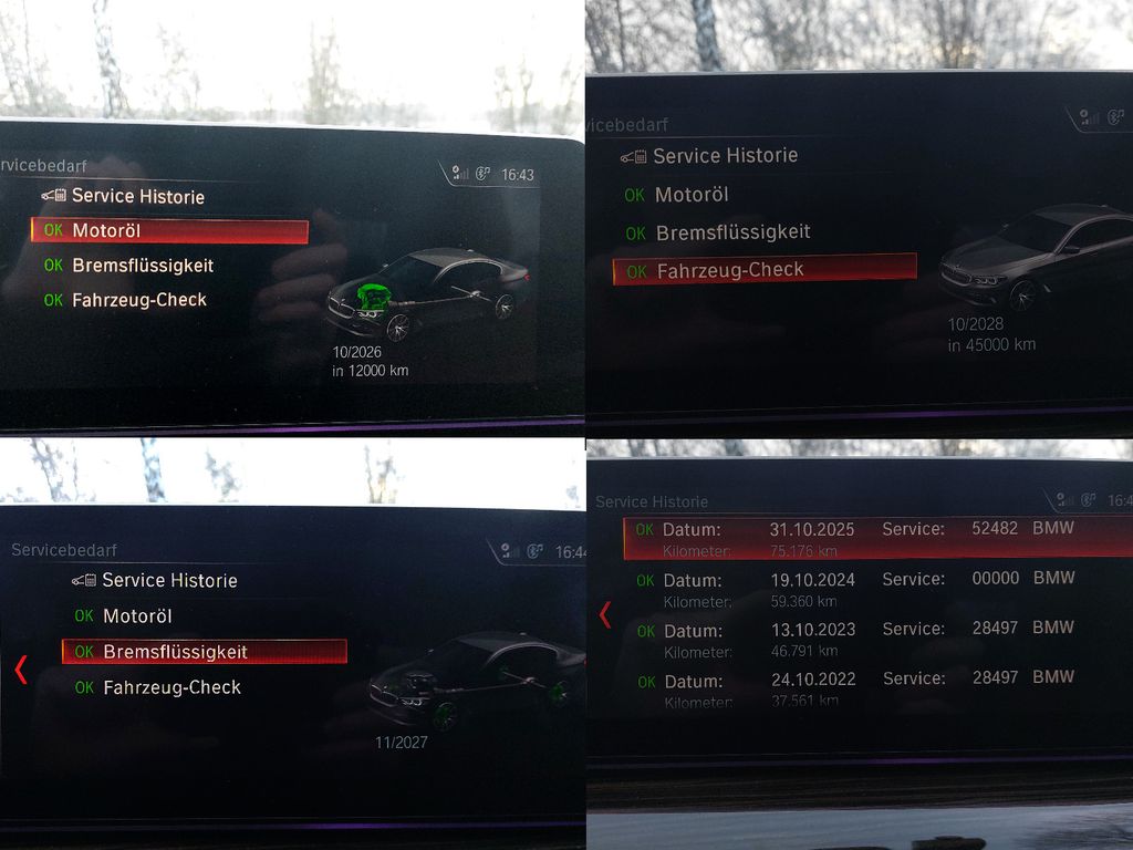 Der Wagen ist angemeldet und wird täglich auf Winterreifen gefahren. Sommerreifen auf original BMW-Felgen inklusive. Der Wagen ist technisch im einwandfreiem Zustand. Service wurde immer pünktlich durchgefuhrt, entsprechend ist das elektronische Scheckheft vollständig.Letzter Service wurde bei BMW mit 75176 km ende Oktober 2025 durchgeführt.