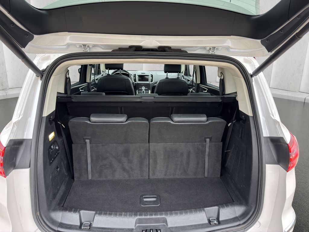 Dieser gepflegte Ford S-Max aus dem Jahr 2017 bietet Ihnen höchsten Komfort und modernste Technologie. Der Benziner mit 241 PS und Automatikgetriebe überzeugt durch seine Leistung bei gleichzeitiger Einhaltung der Euro 6 Norm. Mit Platz für 7 Personen ist dieses Fahrzeug ideal für Familien oder Gruppen. Die weiße Metallic-Lackierung in Kombination mit der schwarzen Lederausstattung verleiht dem Fahrzeug eine elegante Optik. Die 3-Zonen-Klimaautomatik sorgt für angenehme Temperaturen im gesamten Innenraum. Dank des Panorama-Glasdachs genießen Sie ein besonderes Raumgefühl. Der S-Max verfügt über eine umfangreiche Sicherheitsausstattung mit Spurhalteassistent, Müdigkeitserkennung und adaptivem Tempomat. Die schwenkbare Anhängerkupplung ermöglicht eine gebremste Anhängelast von 1800 kg. Das Fahrzeug wurde scheckheftgepflegt und hatte nur zwei Vorbesitzer.- LED-Scheinwerfer und LED-Tagfahrlicht